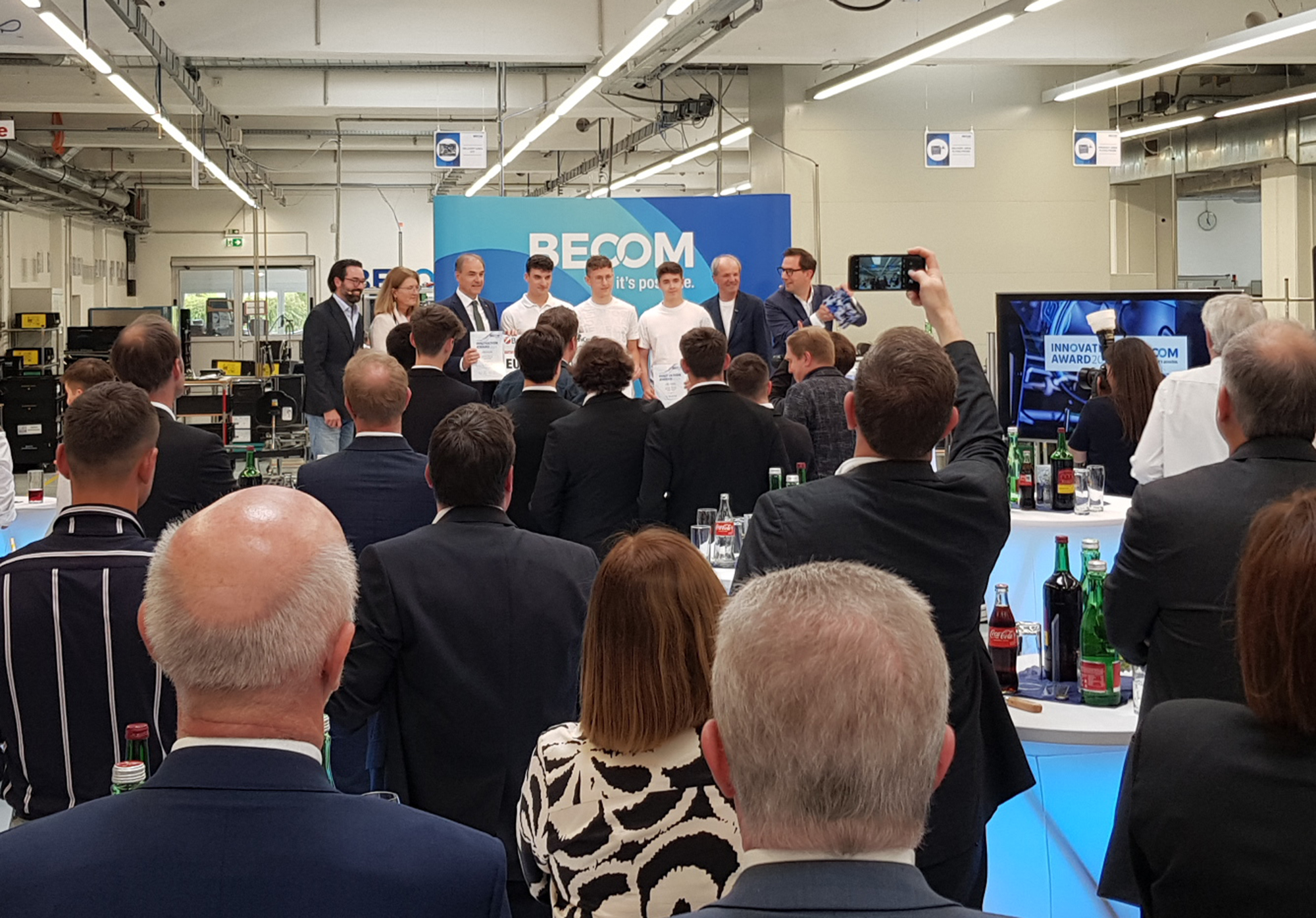 Ende Mai holte die im burgenländischen Hochstraß ansässige „BECOM Electronics GmbH“, langjähriger Bildungspartner der Abt. Elektronik und Technische Informatik, mit dem „Innovation Award 2023“ herausragende Elektronik-Diplomarbeiten vor den Vorhang. In einem mehrstufigen Prozess wurden die innovativsten Projekte begutachtet und gereiht. Vor hochrangigen Vertretern von Industrie und Wirtschaft überreichte Wirtschaftslandesrat Leonhard Schneemann schließlich den mit € 2.000 dotierten ersten Preis an das Team „Ball-Blaster“.