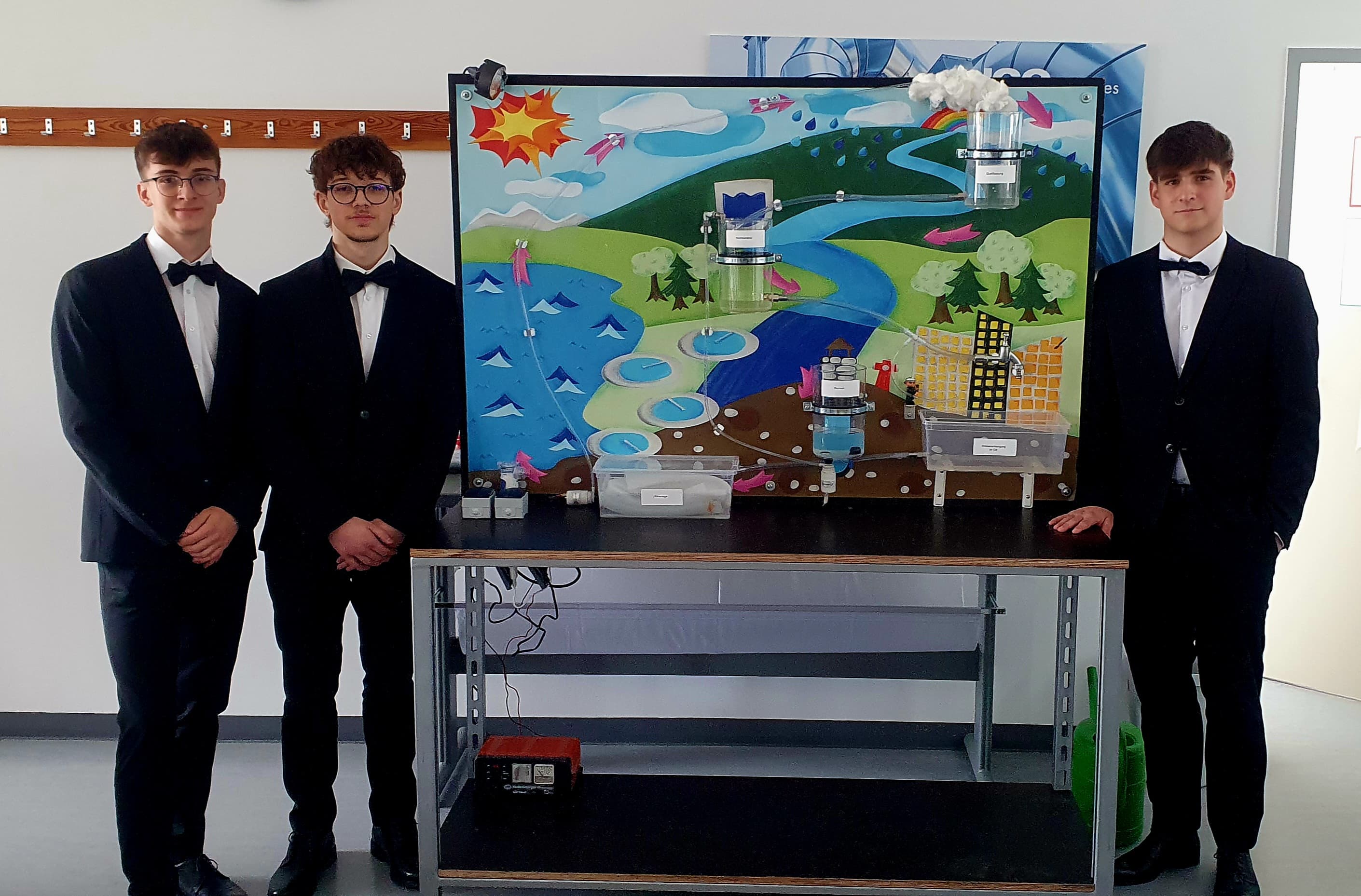 Das Ziel dieses Projekts ist die Entwicklung und der Aufbau eines Wasserlaborstandes, der den natürlichen sowie den urbanen Wasserkreislauf auf anschauliche und verständliche Weise darstellt. Mithilfe des Modells sollen die zentralen Prozesse des Wasserkreislaufs – wie Wasserförderung, Verdunstung, Kondensation und Niederschlag – realitätsnah dargestellt werden. Gleichzeitig wird der urbane Wasserkreislauf, der die menschliche Nutzung und Rückführung des Wassers in den natürlichen Kreislauf umfasst, in das Konzept integriert.