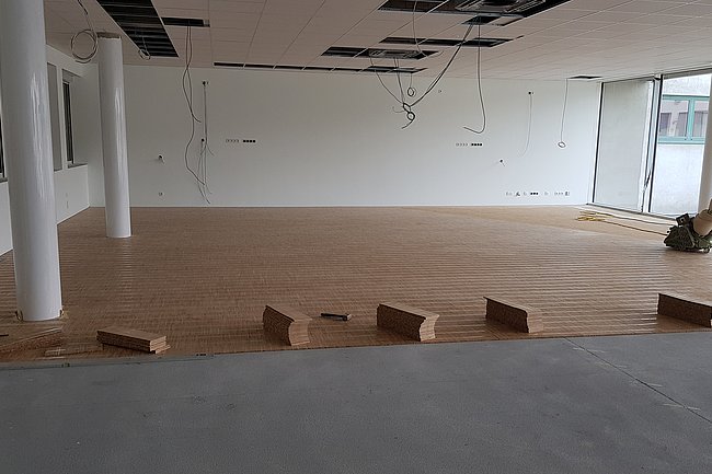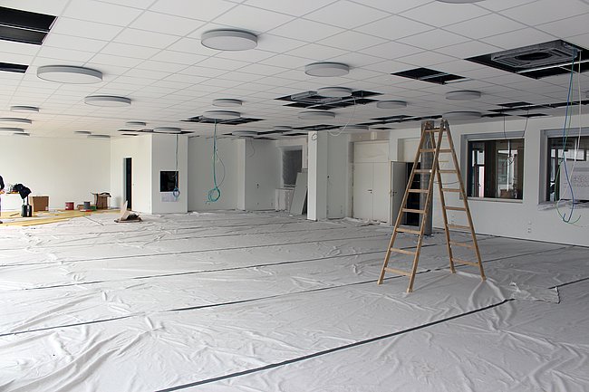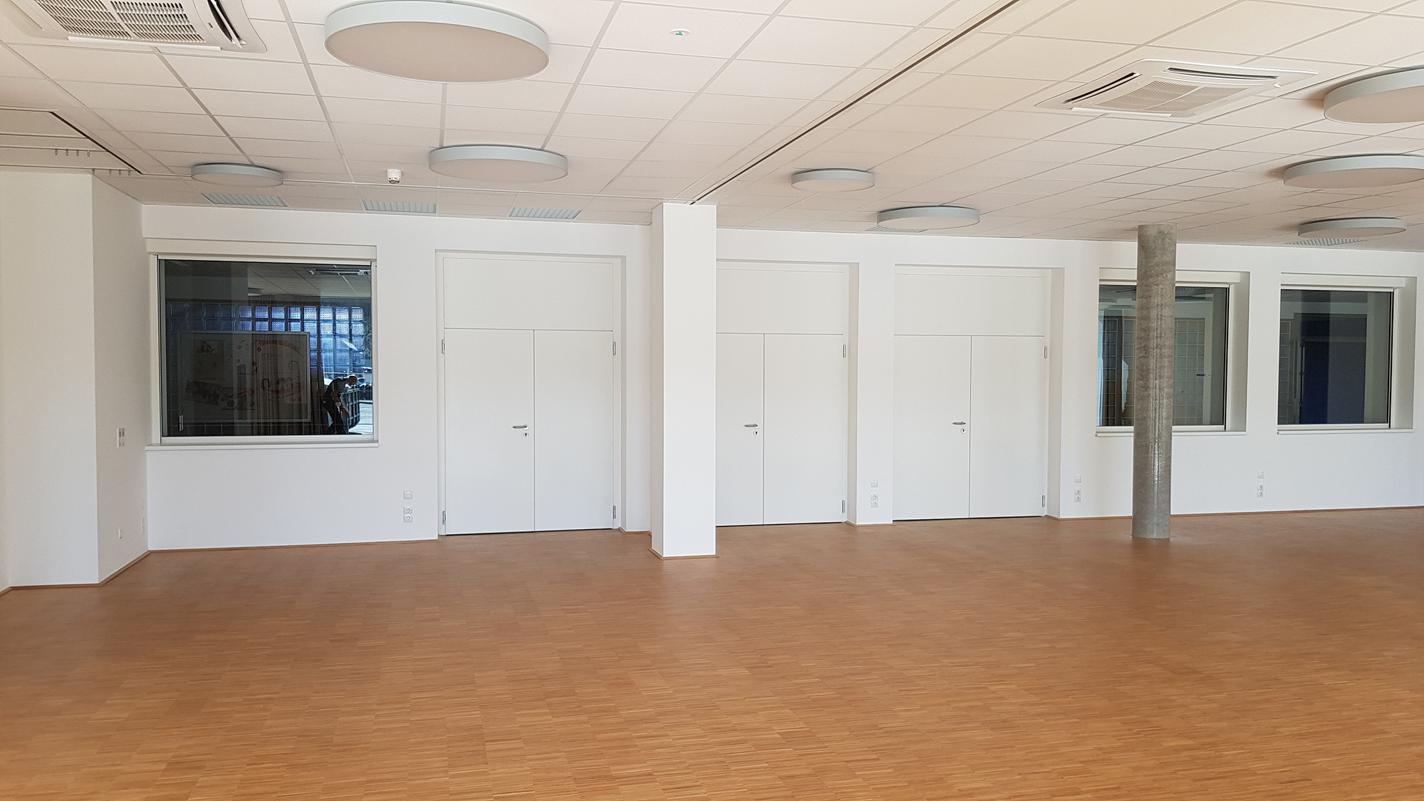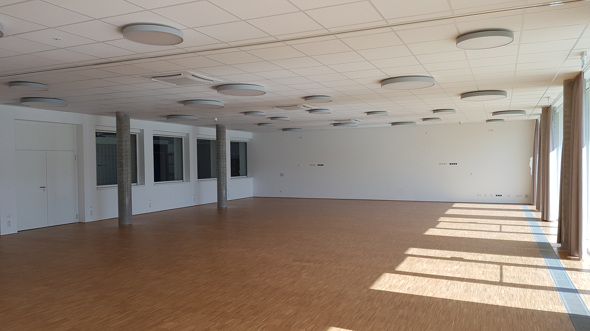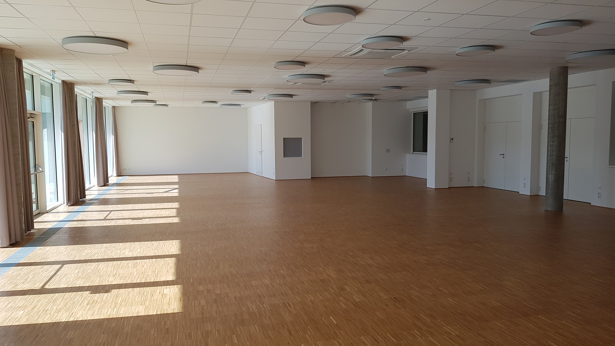 Die Fertigstellungsarbeiten am neuen Fest- und Mehrzwecksaal konnten im Innenbereich kurz vor Ostern weitestgehend abgeschlossen werden. Der nun bereits der HTL zur Verfügung stehende Saal wird allerdings in den nächsten Monaten noch als Ausweichquartier für Lehrer*innen während der Sanierungsarbeiten am Verwaltungstrakt benötigt, erst im Herbst werden auch Veranstaltungen möglich sein.