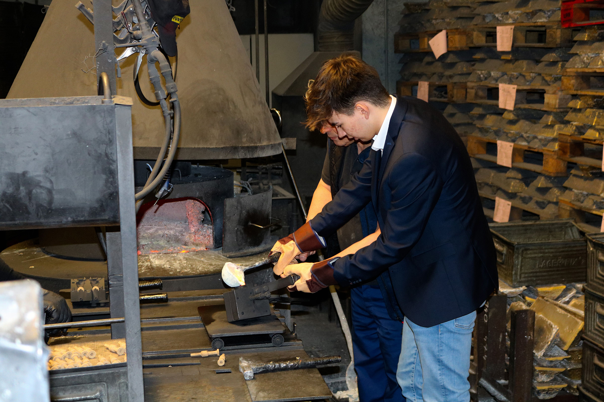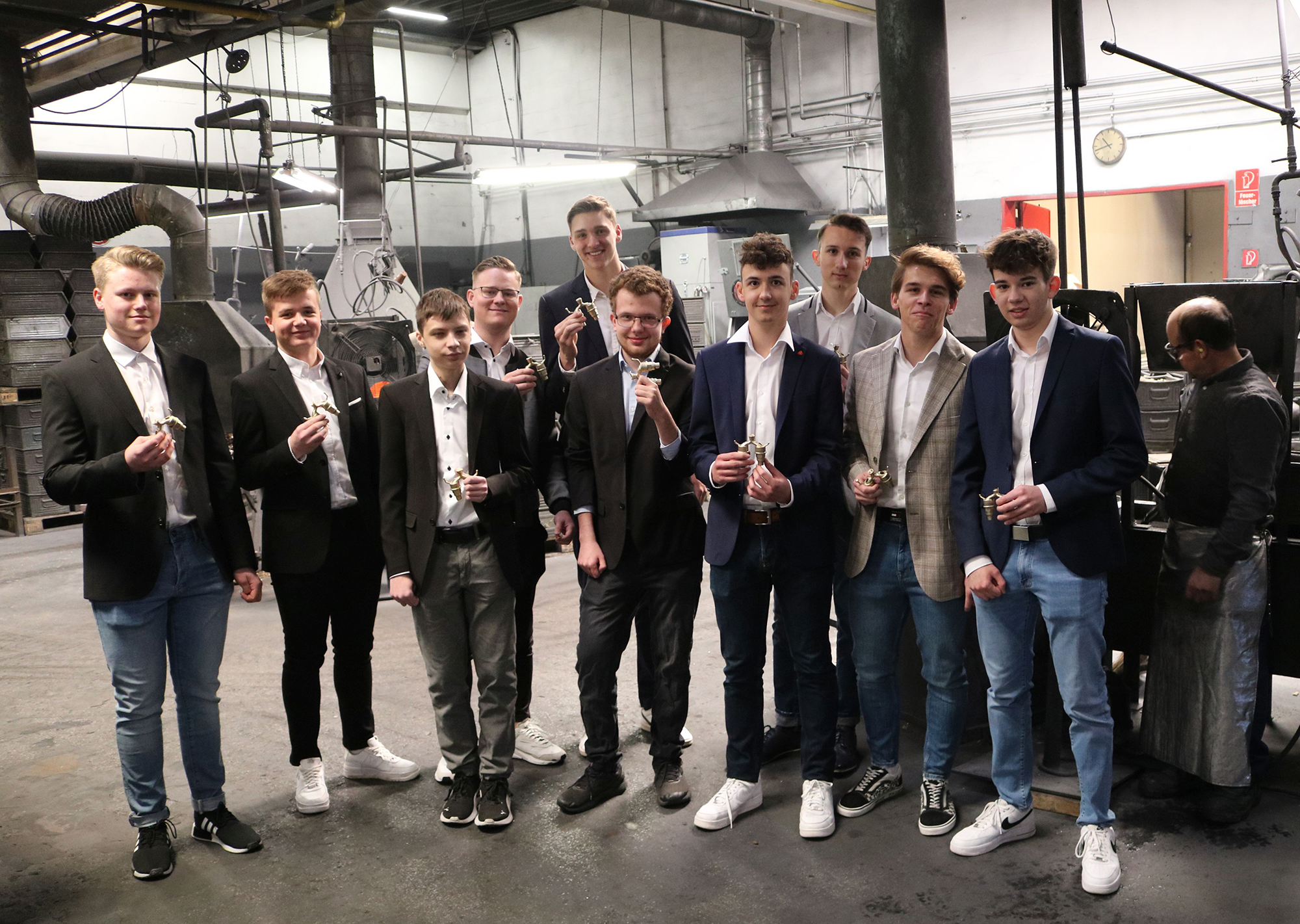 Ein Mitarbeiter und Absolvent der HTL Pinkafeld führte die Schülergruppe durch den Betrieb, zeigte ihnen die Produktionsschritte zur Herstellung von Armaturen und führte anhand konkreter Beispiele eine kurze Hydraulikschulung durch. Ein Höhepunkt dabei war, dass die Schüler eine Armatur selbst gießen und zur Erinnerung an den Firmenbesuch mitnehmen durften.