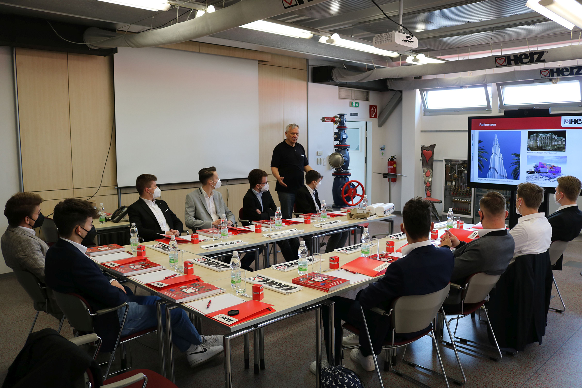 Erstes Ziel dieser Schulveranstaltung war die Zentrale der Firma Herz Armaturen Ges.m.b.H. Österreich, einem international führenden Unternehmen im Bereich der Gebäude- bzw. Heizungstechnik Geschäftsführer Gerhard Glinzerer gab den Schülern einen Überblick über die Struktur, die verschiedenen Geschäftsfelder und die breite Produktpalette der Unternehmensgruppe.
