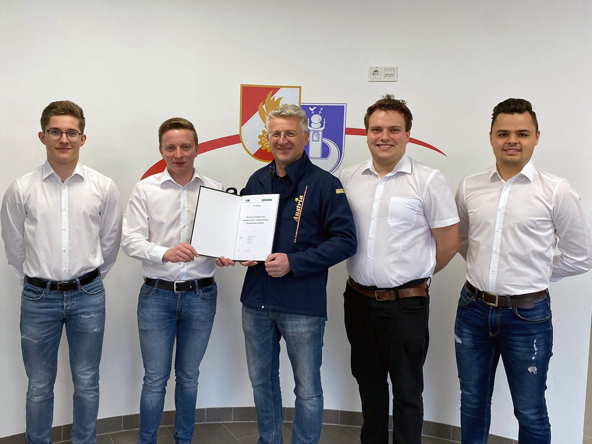Im April wurde die Diplomarbeit „Planung und Vergleich von alternativen HLK-Varianten für das Feuerwehrhaus Pinkafeld“ von den Gebäudetechnik-Maturanten Lukas Konya, David Stampfel, Jakob Ulreich und Philipp Vertics an den Auftraggeber Kdt.-Stv. Christian Ulreich von der Stadtfeuerwehr Pinkafeld übergeben. Betreut wurden die Maturanten von Prof. Christoph Ebner.