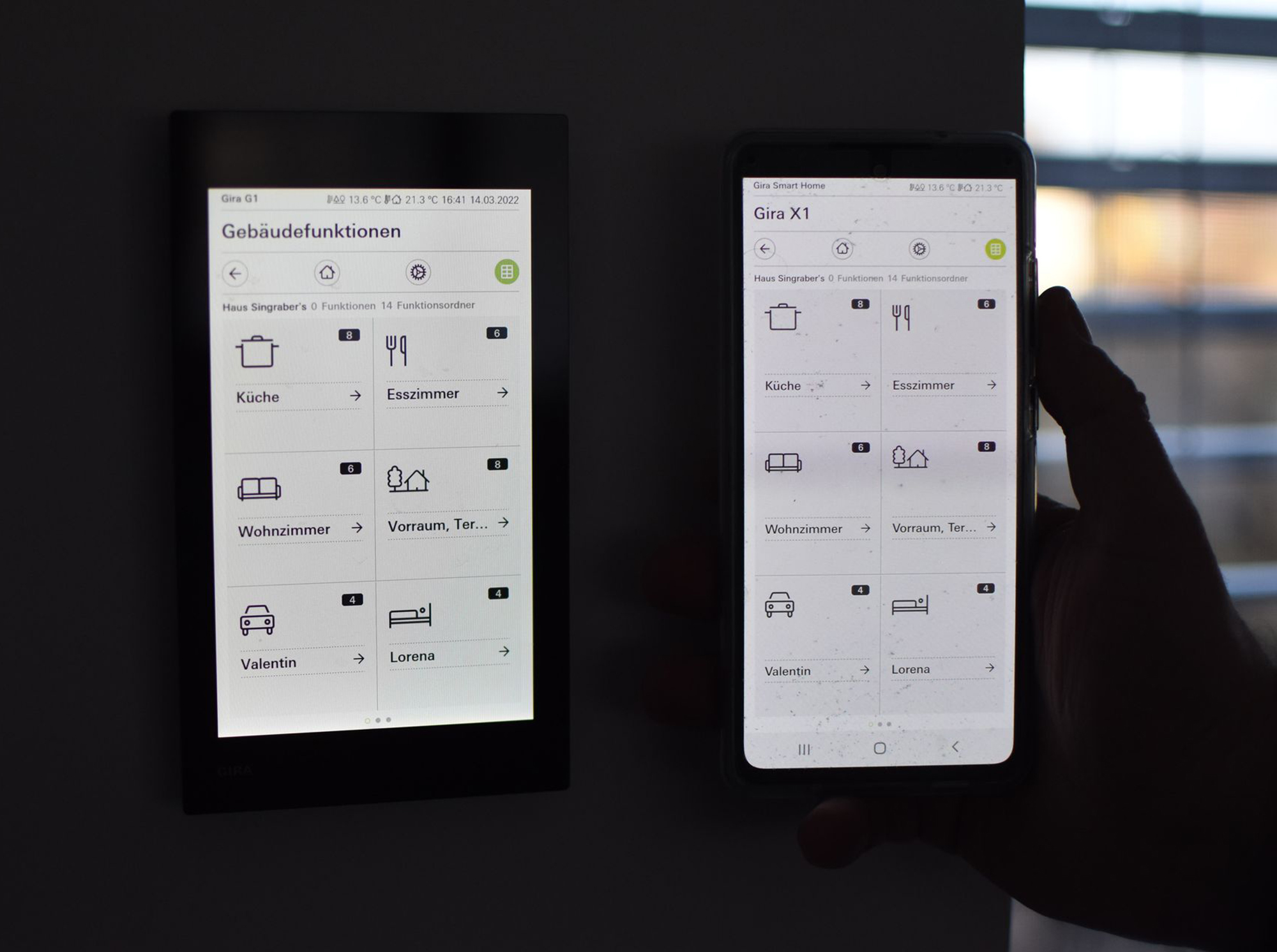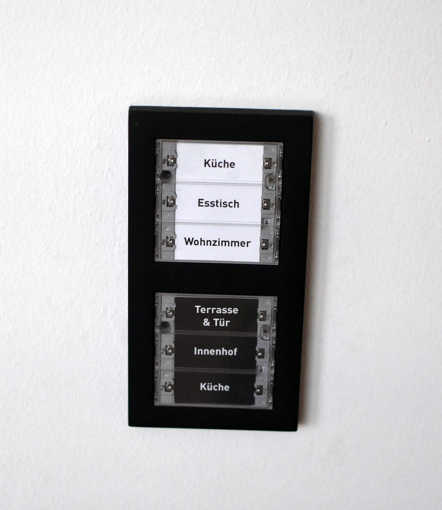 Dabei werden diese Funktionen mittels KNX-Bussystem vernetzt und können so besser überwacht und geregelt werden. Durch die Einbindung von Smartphone und Tablet können alle Zustandsänderungen und Regelvorgänge auch von außen ortsunabhängig überwacht und gesteuert werden. Auch eine „Alexa“ wurde in das Bussystem integriert, um mit Sprachbefehlen Raffstores zu bewegen oder Lampen zu dimmen. Weiters wurden „Szenen“ realisiert, die z.B. beim Fernsehen mit einem Knopfdruck angenehme Bedingungen betreffend Raumlicht, Raffstores usw. zu erzeugen. Mit Hilfe des KNX-Bussystems sowie den Komponenten von GIRA und DALI konnte eine optimale Steuerung für das Gebäude erstellt werden, die keine Wünsche der Benutzer offenlässt.