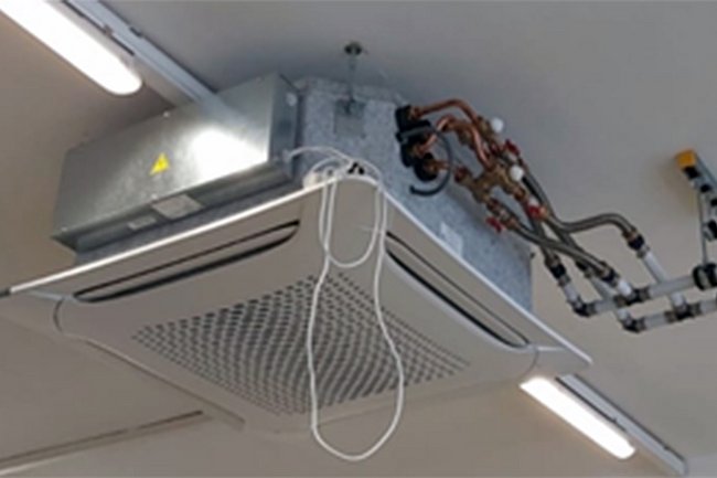 Aufgabe zweier Fachschul-Abschlussarbeiten von Leon Holzgethan und Marwin Grabner sowie von Markus Pimperl und Fabian Stelzcyk war es, mit einer Wärmepumpenanlage in der Gaswerkstätte eine Versuchsanordnung zu installieren, damit Schüler*innen in den folgenden Jahren Übungen und Messungen an dieser Anlage durchführen können.