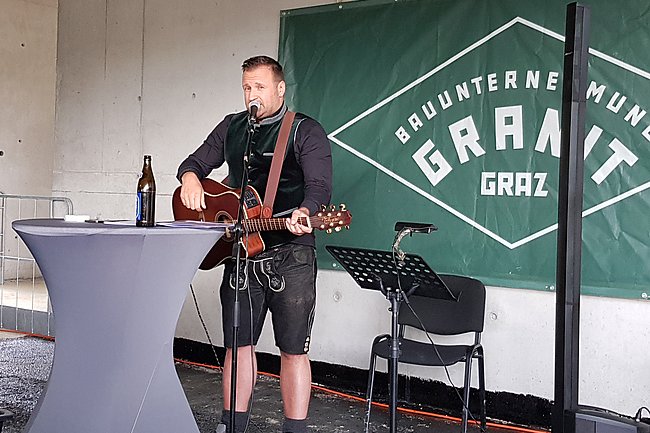Der Einladung von DI Dieter Marhold und DI Michael Schmidle von der Bundesimmobiliengesellschaft sowie von Granit-Geschäftsführer Ing. Patrick Ritz und Granit-Bauleiter DI Andreas Traninger waren viele Beteiligte gefolgt, um mit einem traditionellen Gleichenspruch durch einen Granit-Lehrling die erfolgreiche und termingerechte Beendigung dieses Bauabschnitts gebührend zu feiern. Im gemütlichen Teil sorgte Ing. Ritz persönlich mit der Gitarre für gute Unterhaltung.