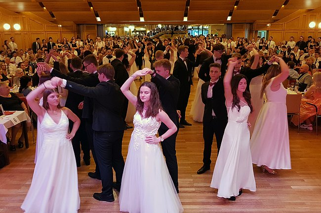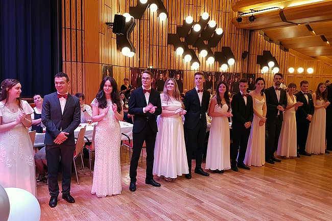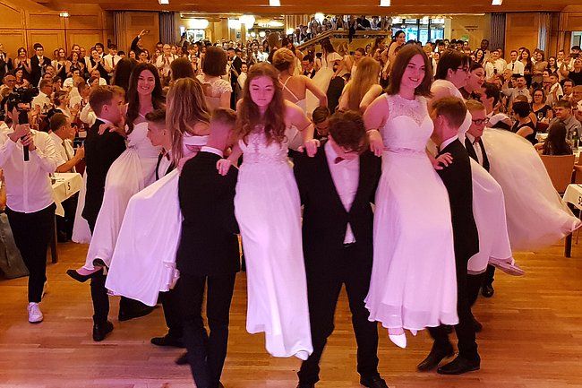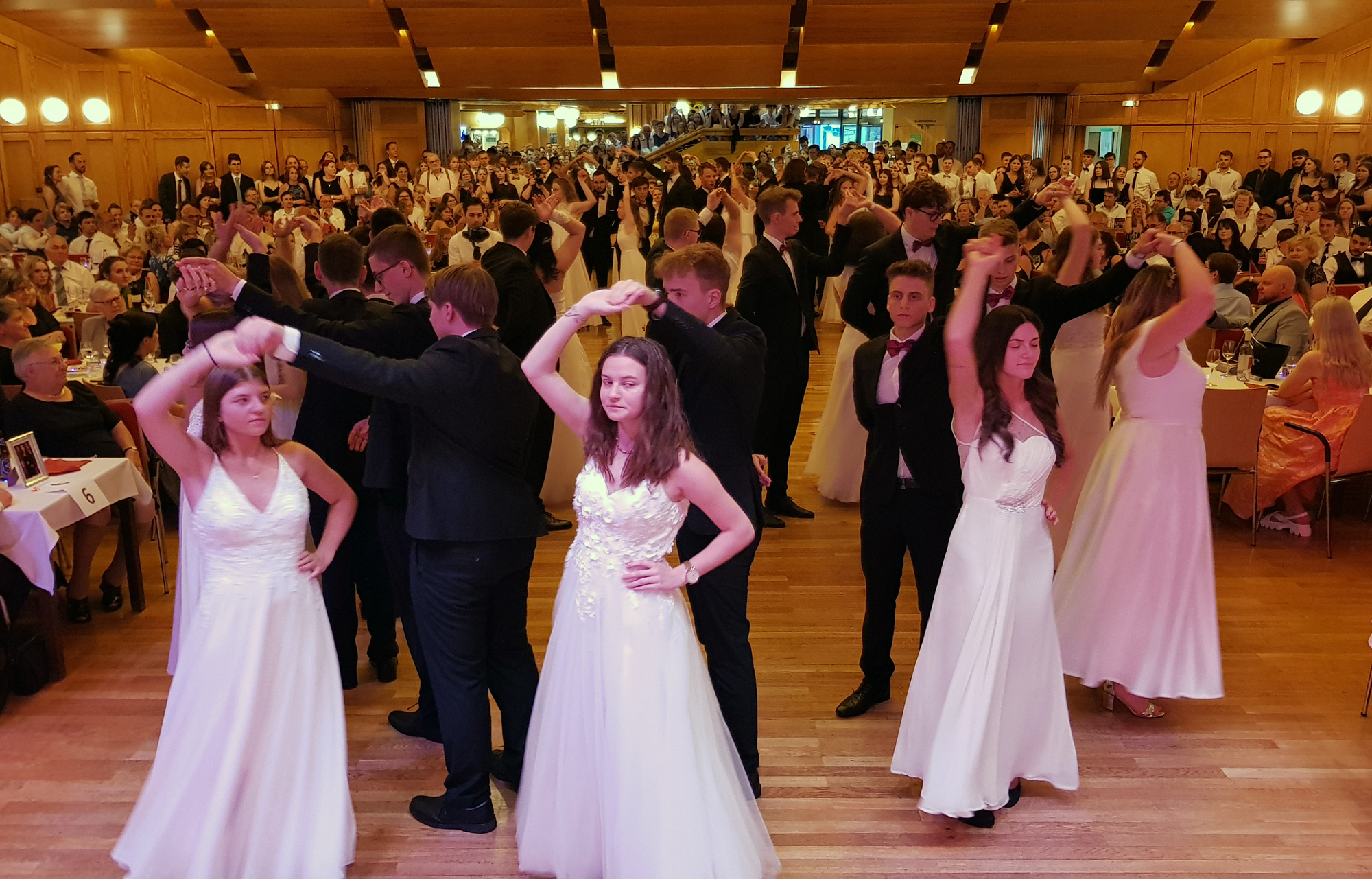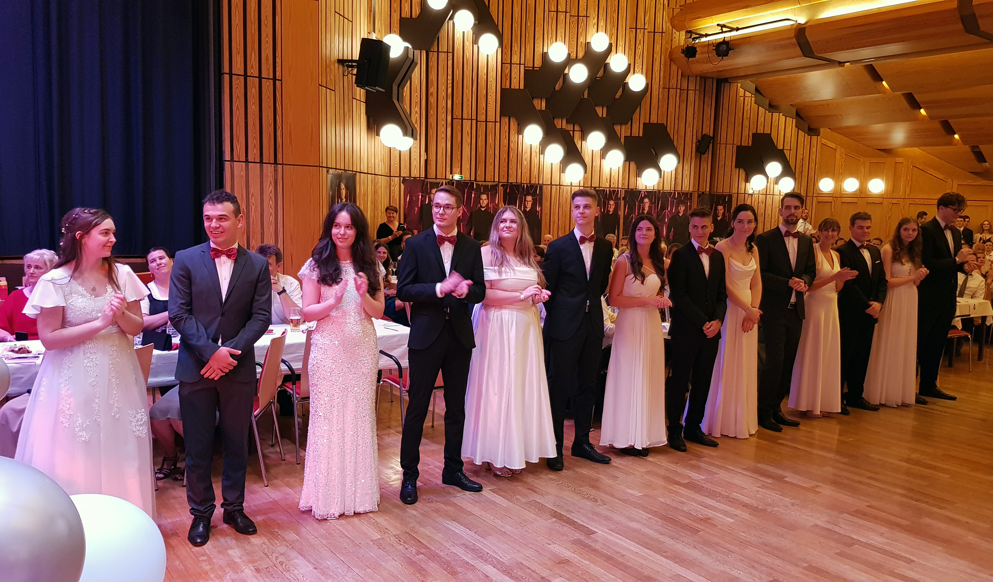 Mit dem Einzug und einer Polonaise, die von den zahlreich erschienenen Gästen mit großem Applaus bedacht wurden, begann der festliche Abend. Die Klassenvorstände Prof. Brigitte Karner und Prof. Jörg Zambo konnten gemeinsam mit Direktor Wilfried Lercher und Abteilungsvorstand Thomas Gabriel die Besucher herzlich willkommen heißen. Auch Pinkafelds Vizebürgermeister Franz Rechberger war der Einladung gefolgt und feierte mit.