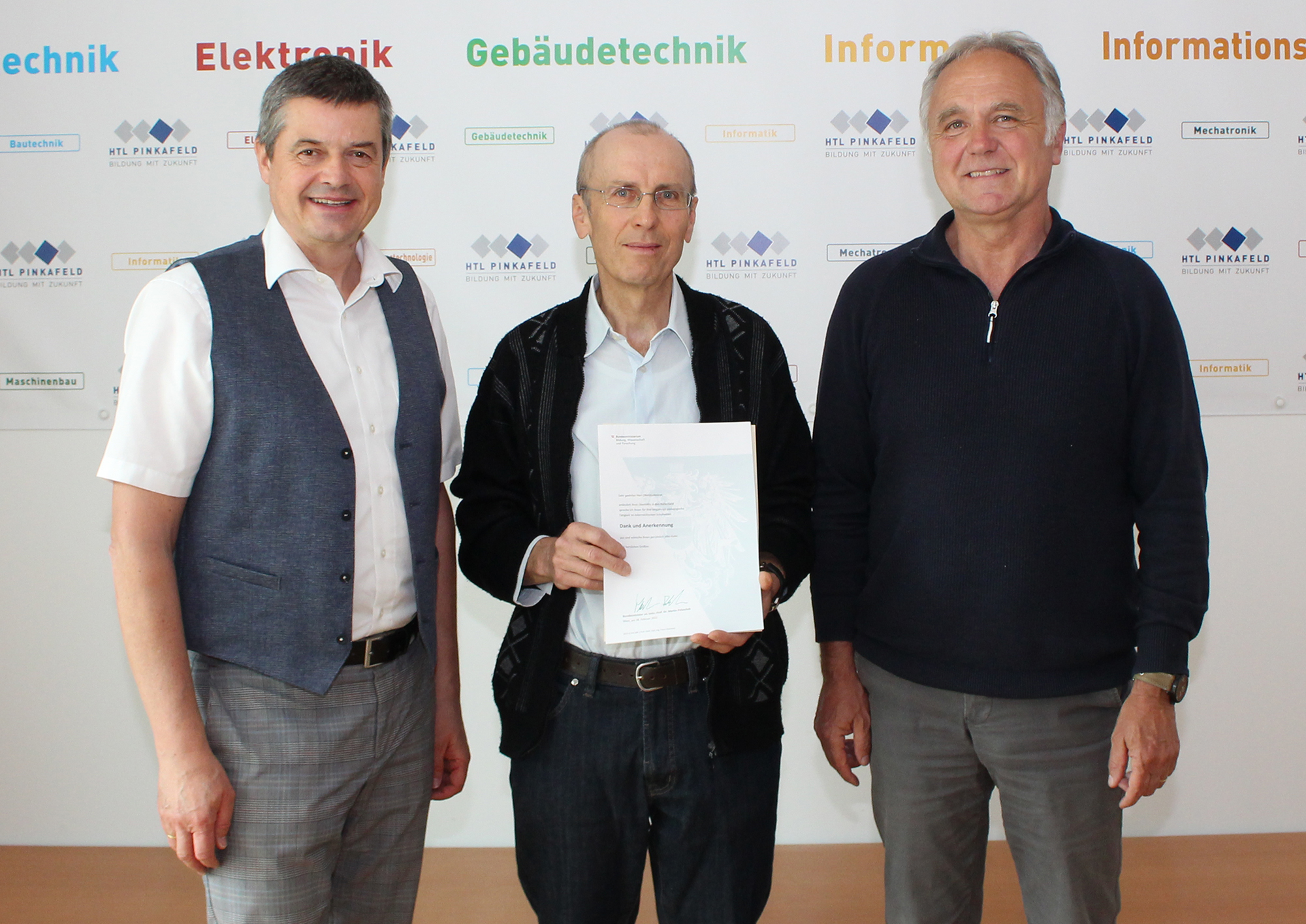 Ende Mai wurde der verdiente HTL-Professor OStR Dipl.-Ing. Franz Gremmel in den wohlverdienten Ruhestand verabschiedet.Zu diesem Anlass bedankten sich Gebäudetechnik-Abteilungsvorstand Adalbert Schönbacher und Dir. Wilfried Lercher sehr herzlich für das Geleistete und das große Engagement zum Wohle der Schülerinnen und Schüler.