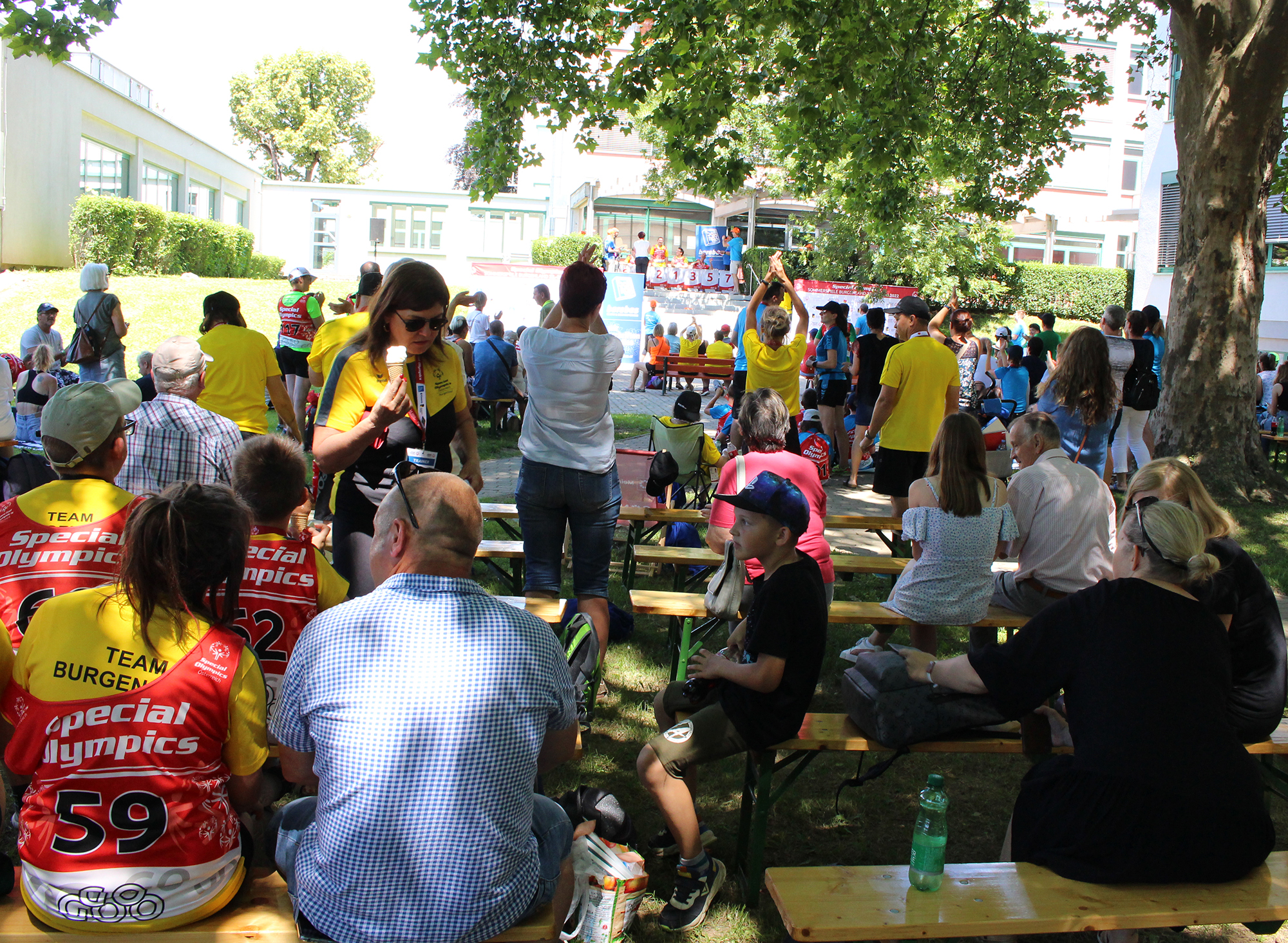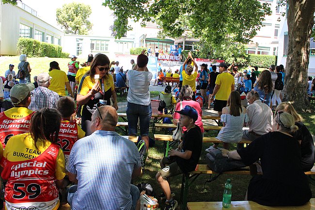 Bei der abschließenden Siegerehrung unter den schattenspendenden Platanen im HTL-Innenhof waren die hohen Temperaturen dann gut auszuhalten und es konnte mit voller Energie und Lautstärke allen Aufgerufenen applaudiert werden.