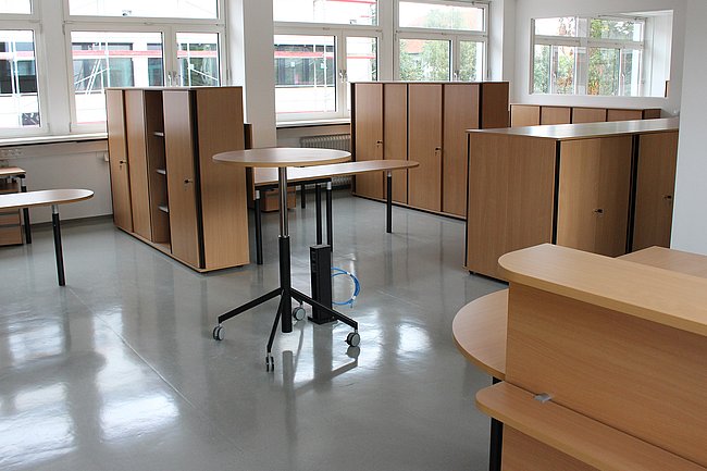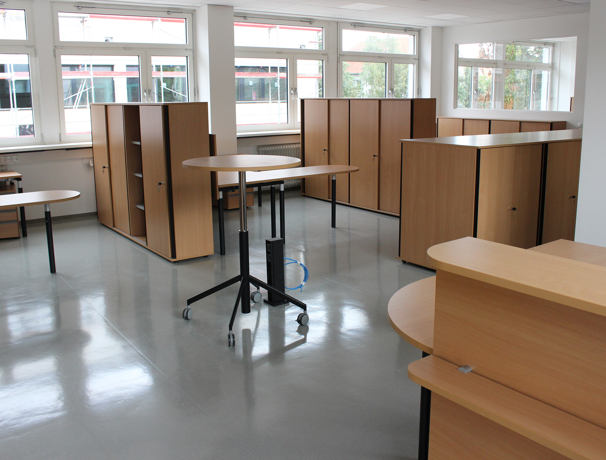 Die Sanierung der beiden Geschosse des Verwaltungstrakts liegt gut im Zeitplan, die Möblierungen und Rückübersiedlungen haben bereits begonnen, damit alle Räumlichkeiten rechtzeitig vor Schulbeginn wieder zur Verfügung stehen.