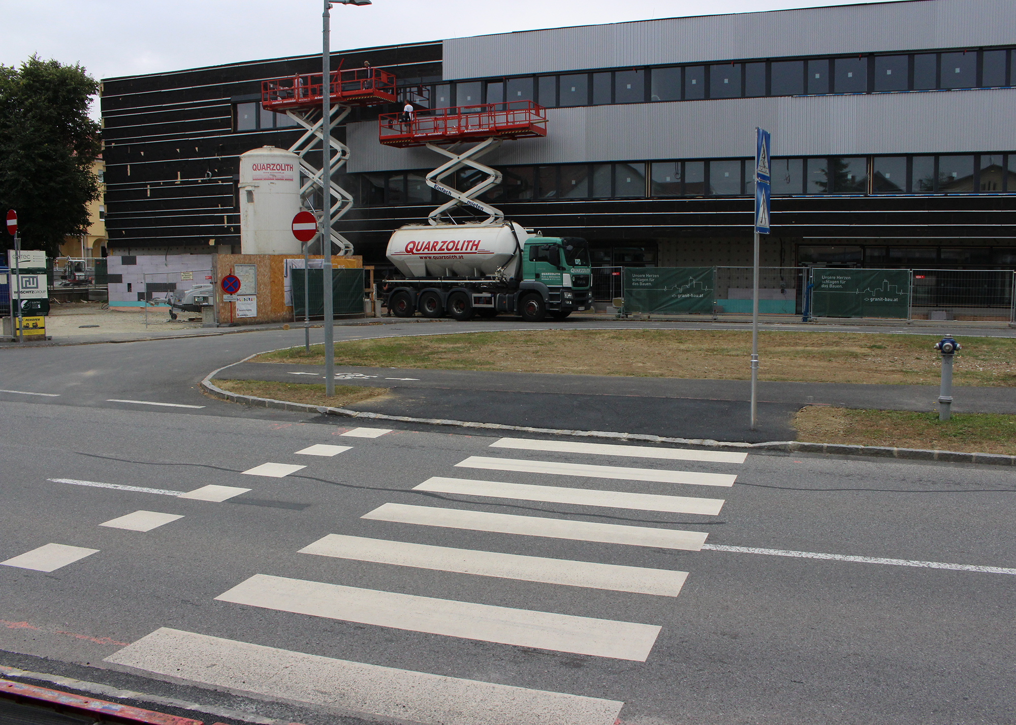 Vor der HTL wurde der Schutzweg für Fußgänger und Radfahrer aus dem Kurven-/Kreuzungsbereich zur Erhöhung der Sicherheit bei der Straßenüberquerung um 50 m vor den Haupteingang der HTL verlegt.