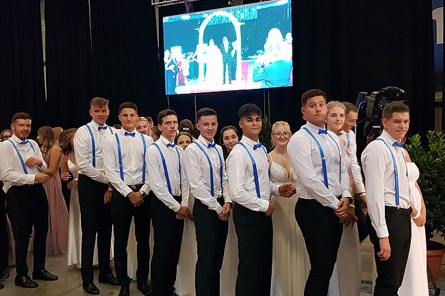 Nach dem Einzug, den die Klassenvorstände Prof. Andreas Weinhoffer (5AHGT), Prof. Judith Fenz (5BHGT) und BEd Johann Fasching (4AFGT) ankündigten, begrüßten Abteilungsvorstand Adalbert Schönbacher und Dir. Wilfried Lercher die Ballgäste.