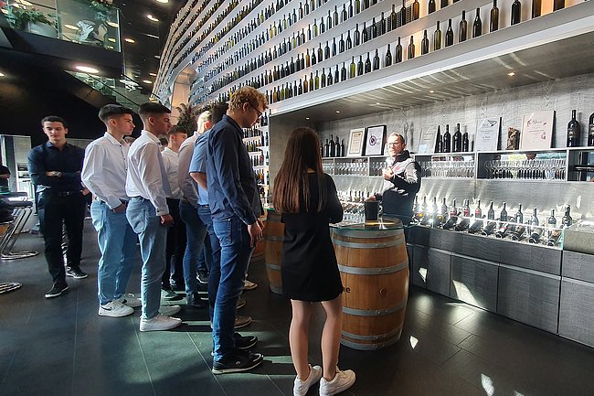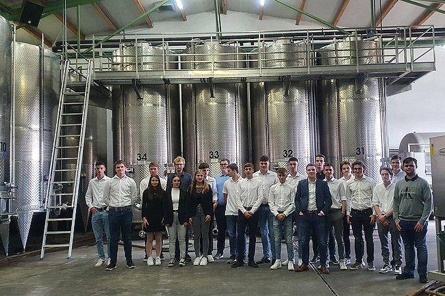 Beeindruckend war die Führung durch das Weingut Scheiblhofer, wo den Schüler*innen die Produktionsabläufe Falstaff prämierter Weine nähergebracht wurde. Der Chef selbst, Erich Scheiblhofer, freute sich die HTL-Schüler*innen in seiner „Hall of Legends“ begrüßen zu dürfen.