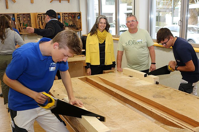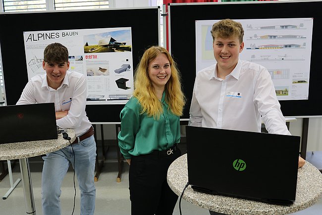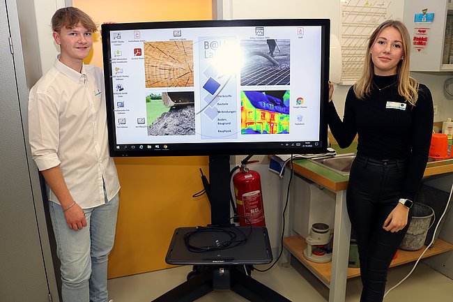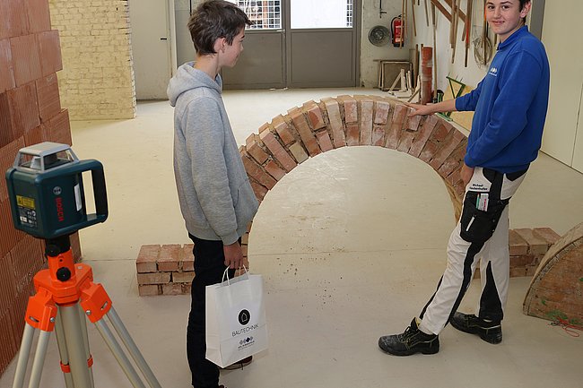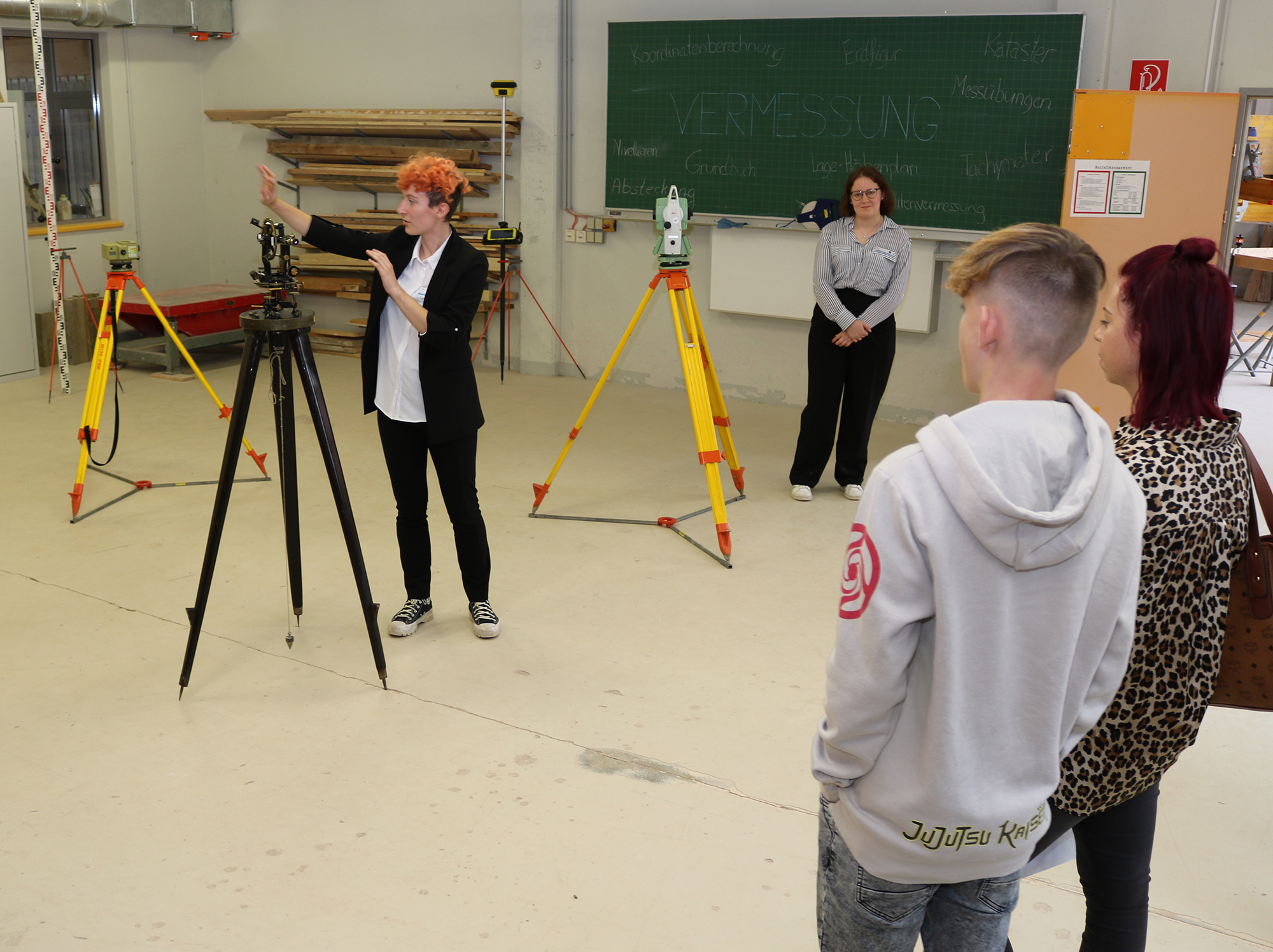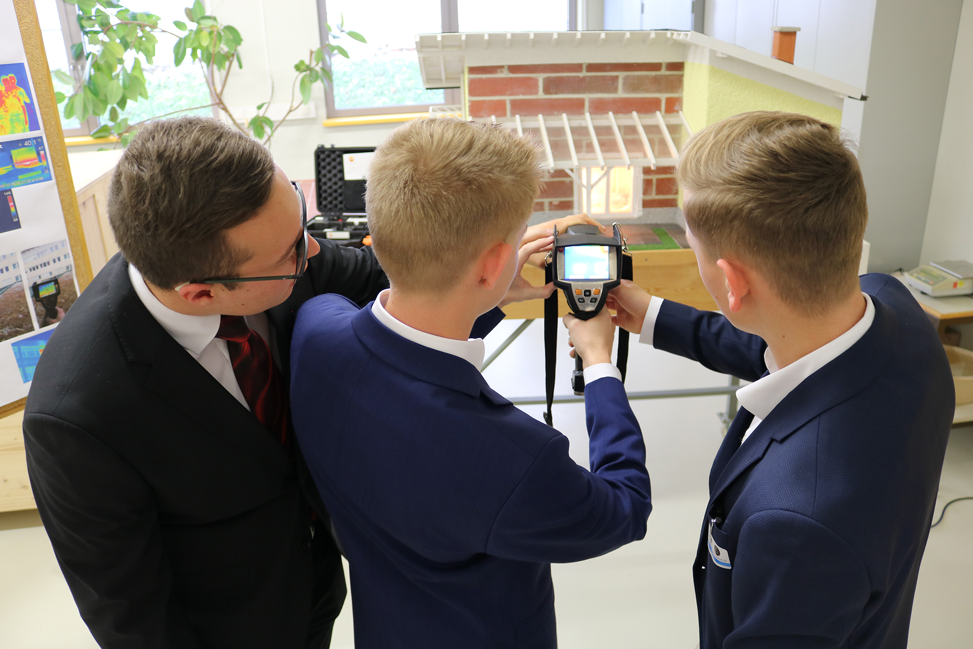 So wurden die verschiedenen Aspekte des Unterrichts anhand der Gegenstände und von Diplomarbeiten erläutert. Im Baulabor wurden Holz- und Betonversuche durchgeführt, die Zukunft des virtuellen Bauens wurde mittels VR-Brille sowie 3D-Scannen und -Drucken demonstriert und die Wärmebildkamera zeigte am Modellhaus sehr anschaulich potentielle Schwachstellen. Wesentliche Teile des fachpraktischen Unterrichts in der Zimmerei und Maurerei konnten am Ende des Rundgangs selbst ausprobiert werden.