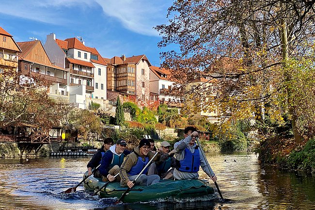 Neben faszinierenden Bauten aus Renaissance und Barock bot der Aufenthalt in Krumau vor allem Action mit einer Schlauchbootfahrt auf der Moldau bei strahlendem Sonnenschein. Begleitet wurde die Klasse von Prof. Frances Heilkenbrinker-Irmler und Klassenvorstand Prof. Christian Putz.