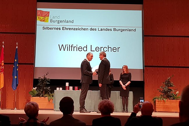 Dabei wurde Dir. Wilfried Lercher für seine Verdienste um das burgenländische Bildungssystem mit dem Silbernen Ehrenzeichen des Landes Burgenland geehrt.