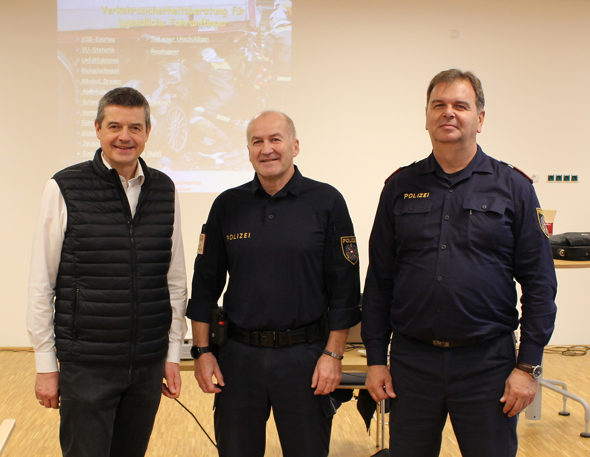 Kürzlich waren ChefInsp. Johann Reisner und AbtInsp. Wolfgang Hinterer von der Verkehrsabteilung mehrere Male in der HTL Pinkafeld zu Gast, um diese für junge Menschen sehr wichtigen Themen zur Verbesserung der Verkehrssicherheit mit den Schüler*innen der zweiten Klassen zu besprechen.