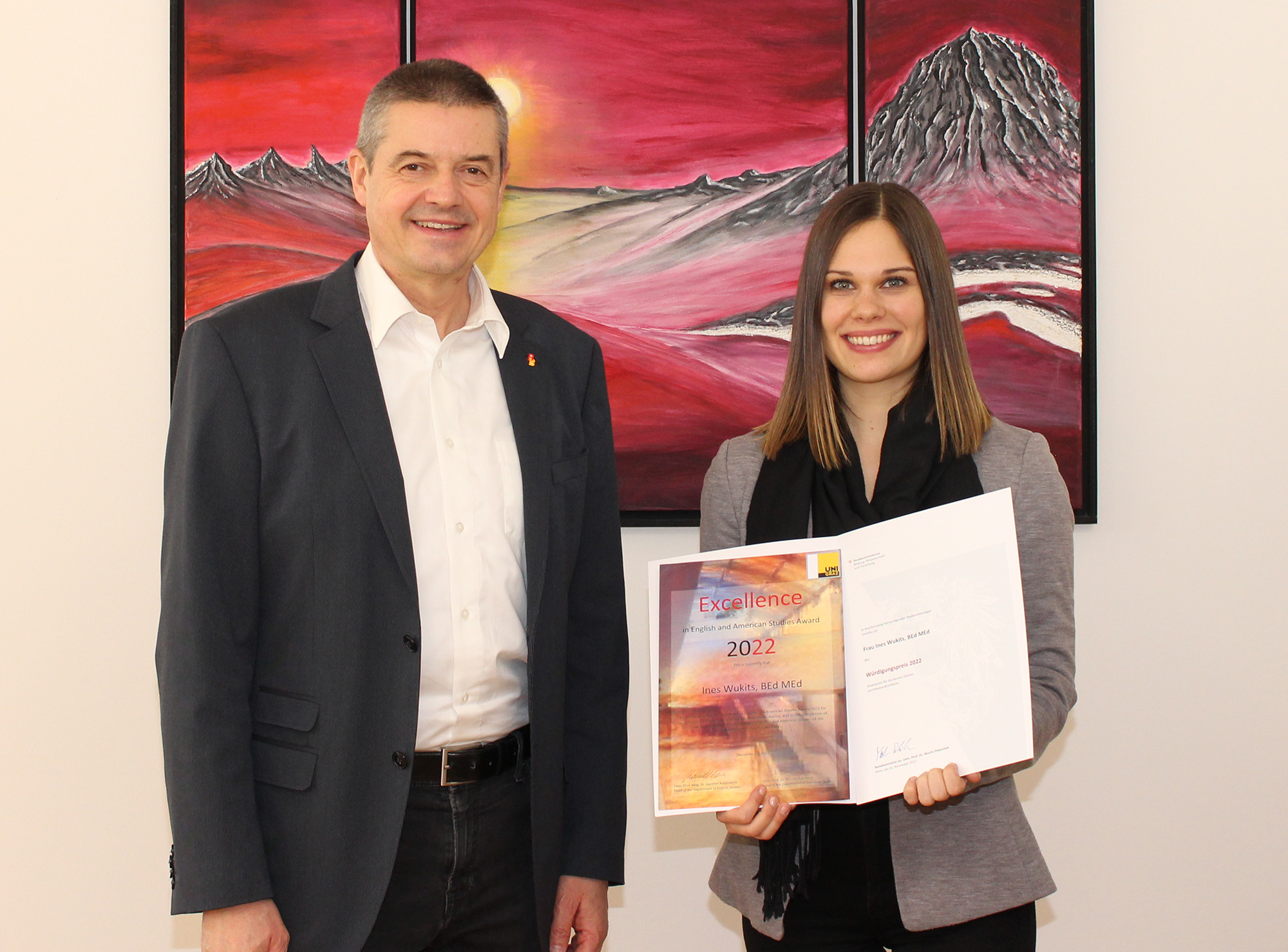 Mit dem Excellence Award der Universität Graz zeichnen die Institute der Anglistik bzw. Amerikanistik die fünf besten Absolventinnen und Absolventen des vergangenen Studienjahres aus. Am 5. Dezember ist er an Prof. Ines Wukits im Meerscheinschlössl in Graz verliehen worden.