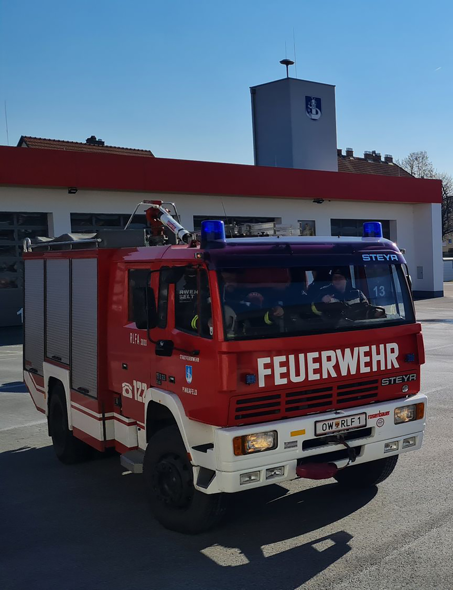 Die Gebäudetechnik-Schüler*innen der 1BHGT, 3BHGT und 4BHGT mit dem Ausbildungsschwerpunkt „Brand- und Zivilschutz“ nutzten die Zeit vor den Semesterferien für einen Ausbildungstag im Feuerwehrhaus der Stadtfeuerwehr Pinkafeld.