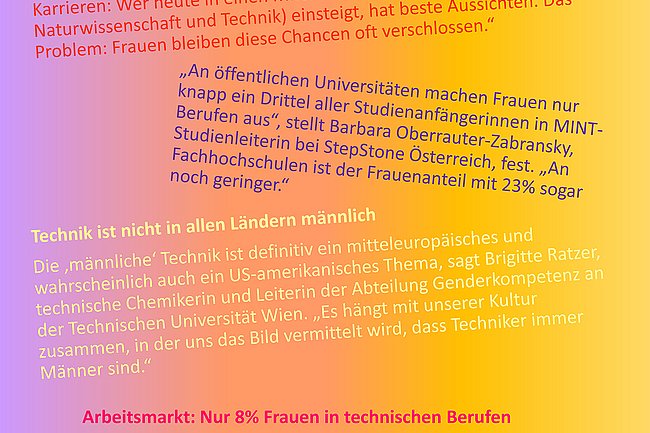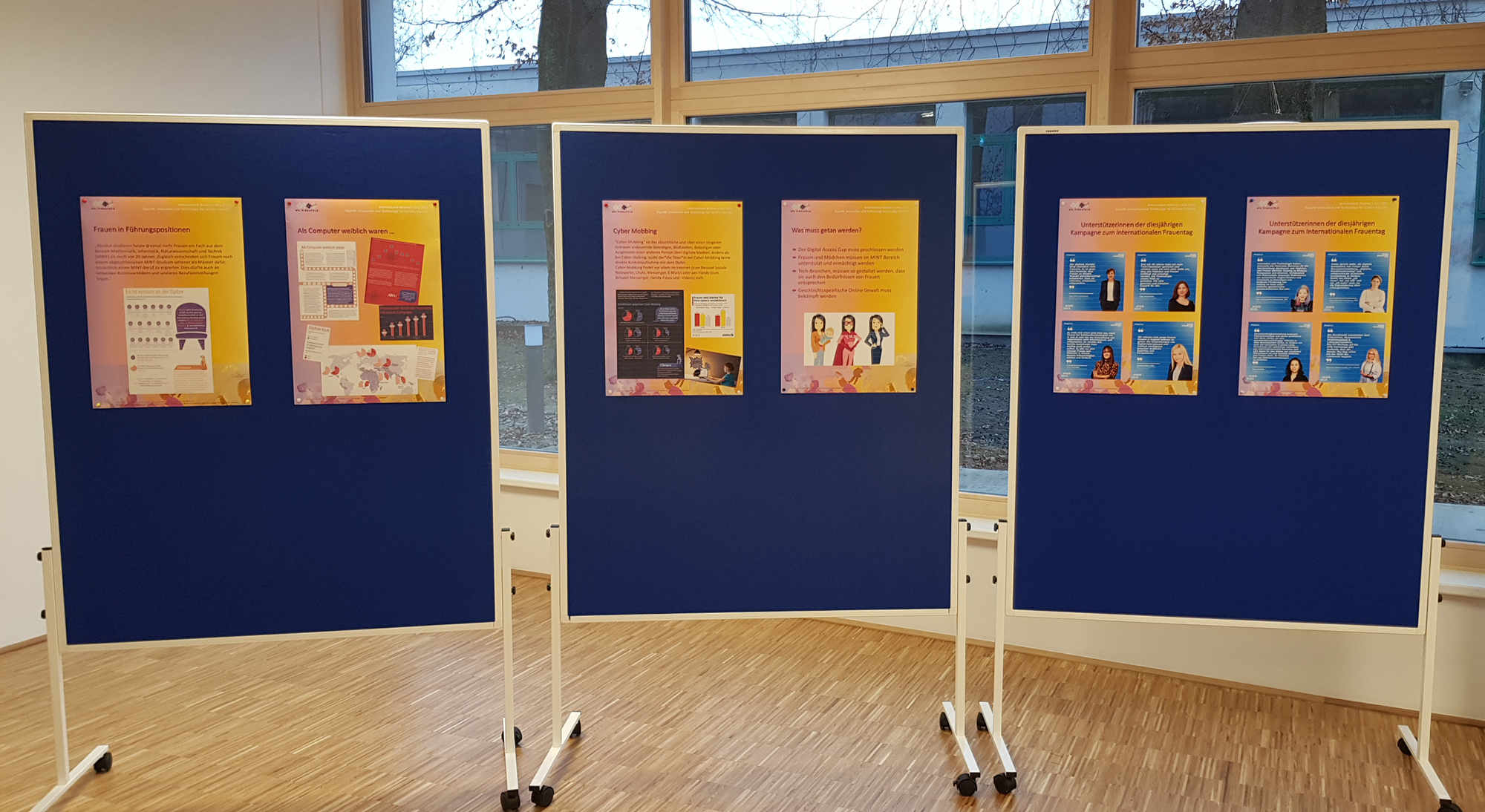 An der HTL Pinkafeld werden in Form einer von Mädchenteambetreuerin Prof. Birgit Stephan initiierten Ausstellung im neuen Eingangsfoyer und einer in Violett gehaltenen Beleuchtung anlässlich des Internationalen Frauentags „IWD 2023“ auf die Unterschiede zwischen Frauen und Männer aufmerksam gemacht.