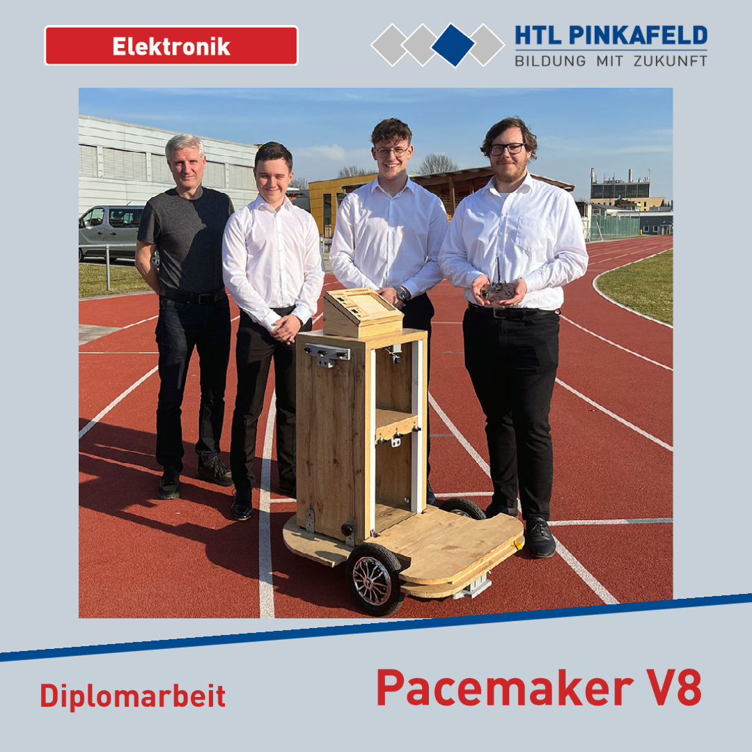 Ende März wurde die Diplomarbeit „Pacemaker V8“ von den Elektronik-Maturanten Samuel Pichler, Michael Piff und Lukas Supper an den Auftraggeber HTL Pinkafeld übergeben. Betreut wurde diese Diplomarbeit von Prof. Thomas Schlaudoschitz.