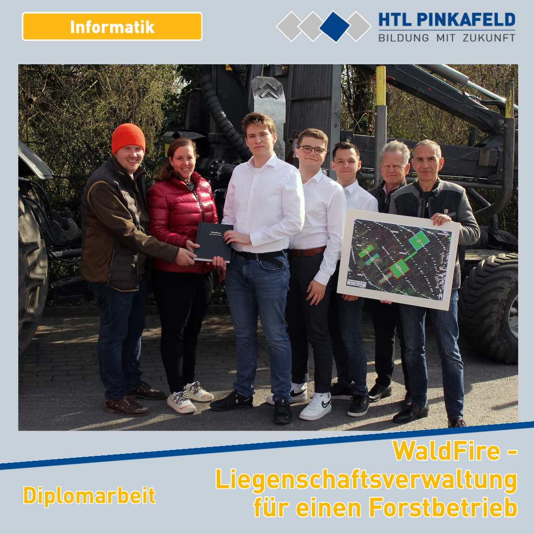Anfang April übergab das Informatik-Projektteam Sebastian Pfeiffer, Tobias Thurner und Maximilian Gelbmann dem Auftraggeber und Unternehmer Helmut Ulreich das neu entwickelte Liegenschaftsverwaltungssystem „WaldFire“. Betreut wurde die Diplomarbeit von Prof. Heinz Bundschuh und Prof. Markus Klausz.