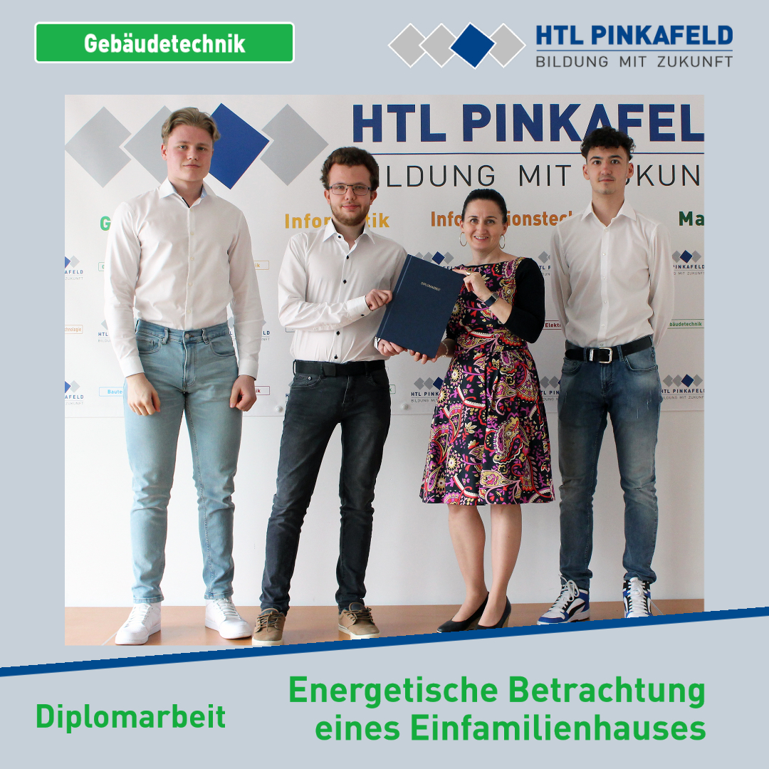 Kürzlich wurde die Gebäudetechnik-Diplomarbeit „Energetische Betrachtung eines Einfamilienhauses in Fürstenfeld“ der Maturanten Timo Pelzmann, Noah Hütter und Johannes Strobl an den Bauherren des Hauses Hermann Hütter und seine Familie übergeben.Ziel der von Prof. Judith Fenz betreuten Diplomarbeit war es ein umweltfreundliches und wirtschaftliches Heizungskonzept zu planen. Neben dem Heizungssystem mussten auch die rechtlichen Rahmenbedingungen für die spätere Ausführung des Projektes erarbeitet werden.