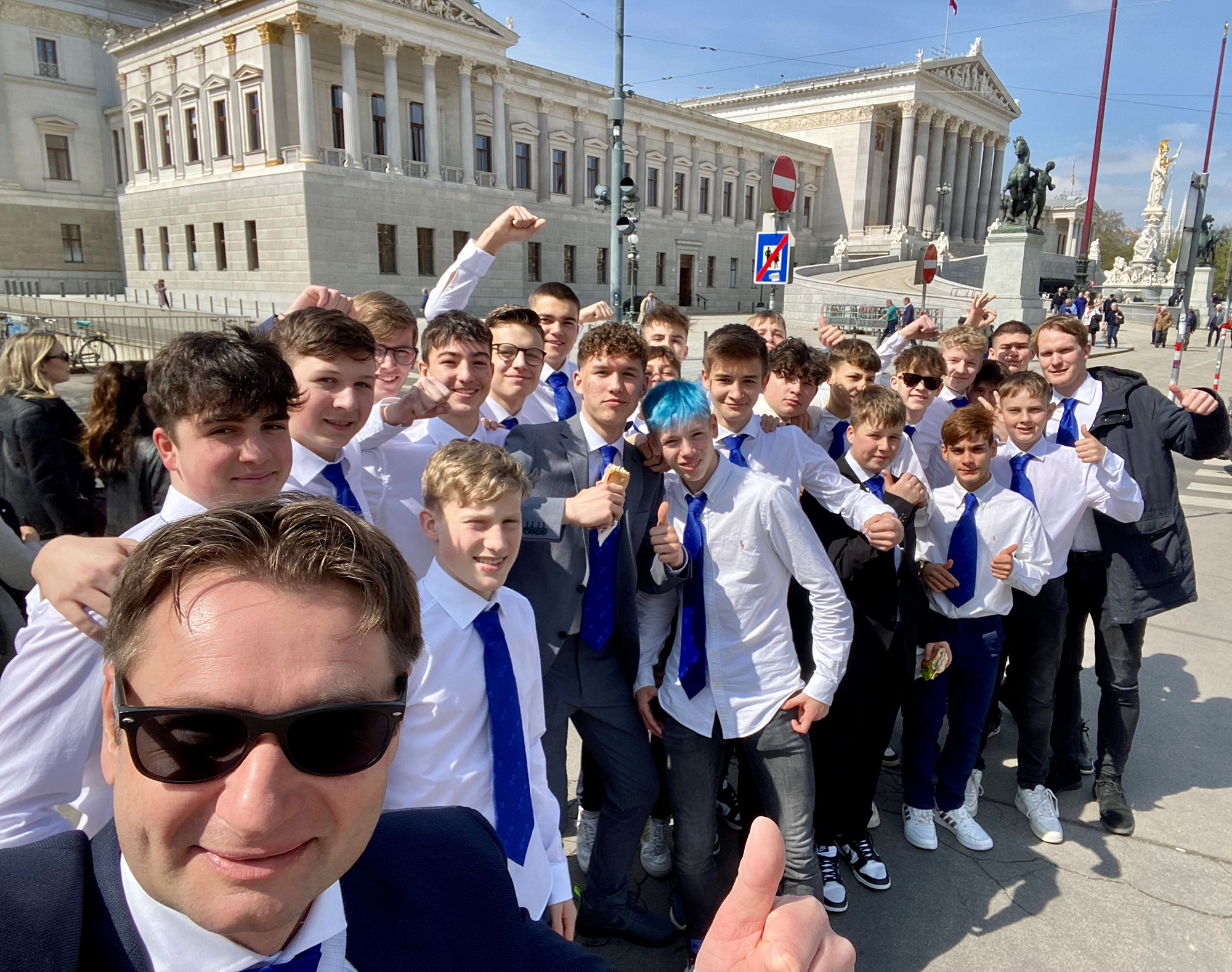Auch die begleitenden Lehrer, Klassenvorstand Prof. Thomas Sackl und Prof. Christian Putz, waren von der großartigen Veranstaltung im neu renovierten Parlamentsgebäude beeindruckt.