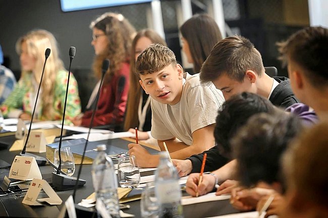 Die Aufgabe bestand darin, eine Gesetzesvorlage zum Thema „Schule und Digitalisierung“ in Parlamentsklubs zu erarbeiten. In den Ausschüssen ging es darum, sich mit den Vertreter:innen der anderen Klubs abzustimmen und bei den Pressekonferenzen gaben die Jung-Abgeordneten Interviews. Höhepunkt waren die Reden im großen Plenarsaal des Parlaments unter dem Vorsitz des Nationalratspräsidenten.