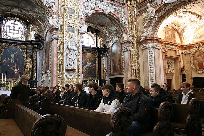 Den Abschluss der fächerübergreifenden Schulveranstaltung bildete ein Besuch im Zisterzienserstift Schlierbach. Das barocke Kloster mit seiner eindrucksvollen Bibliothek und prunkvollen Kirche beherbergt ein Gymnasium, eine Glaswerkstätte und eine Käserei. Im Rahmen einer Führung bekamen die 48 Schülerinnen und Schüler der HTL Pinkafeld Einblicke in den klösterlichen Alltag und verkosteten anschließend unterschiedliche Käsesorten aus Kuh-, Schaf- und Ziegenmilch. Schließlich gehe es bei dieser Exkursion nicht nur darum, zu zeigen, wozu Menschen im schlimmsten Fall fähig seien, sondern auch die Schönheit menschlicher Kulturleistungen erfahrbar zu machen, betonten die beiden Begleitlehrer. „Eine wertvolle Erfahrung“ resümiert ein Schüler in seinem Exkursionsbericht.