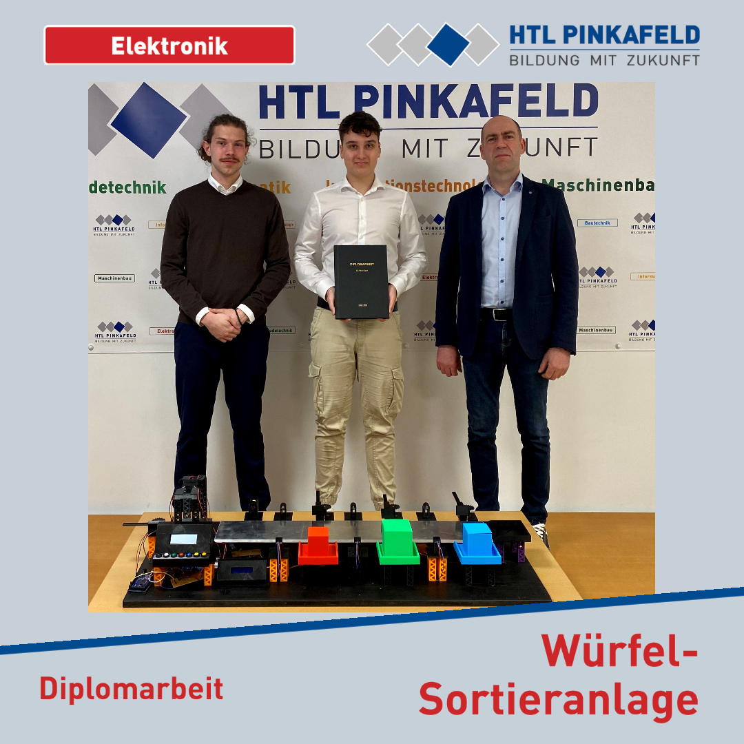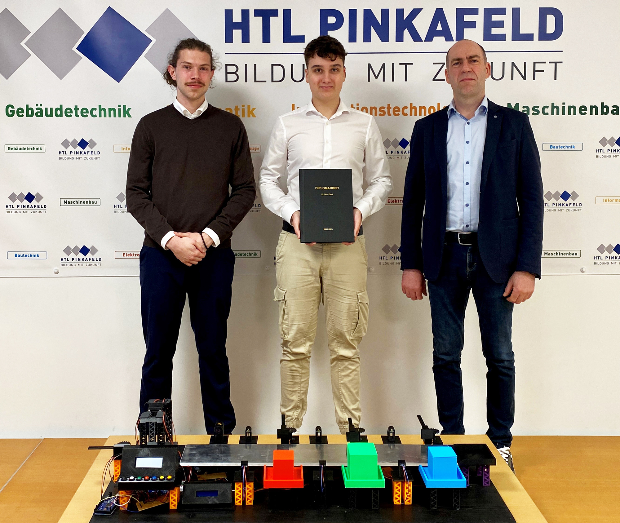 Ende März wurde die Diplomarbeit „Würfel-Sortieranlage“ der Elektronik-Maturanten Jonas Riegelbauer und Julian Witzmann an den Auftraggeber HTL Pinkafeld übergeben. Betreut wurde diese Diplomarbeit von Prof. Christoph Csebits.