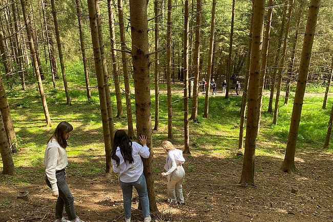 „Warum in die Ferne schweifen? Sieh, das Gute liegt so nah.“ Schülerinnen und Schüler der ersten Bautechnik-Klasse 1CHBT begaben sich kürzlich gemeinsam mit ihrer Deutschprofessorin Sonja Szelinger in Pinkafeld auf Spurensuche. Sagenhafte Plätze und geheimnisvolle Orte galt es zu erkunden. Die Reise endete – bei traumhaftem Wetter – beim „Holzknechtseppl“ auf dem Gerichtsberg in Pinkafeld.