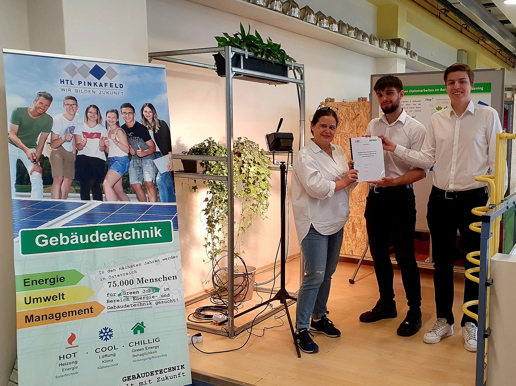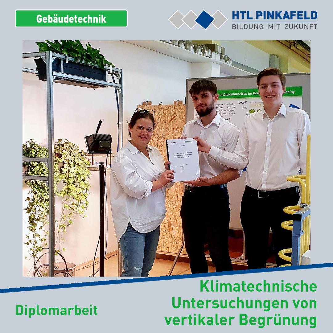 Um die Auswirkungen der vertikalen Begrünung auf die Temperatur zu untersuchen, wurde von der Gebäudetechnik-Maturanten Sanel Avdic und Lukas Berger ein Laborstand geplant und errichtet mit dem Ziel, die positiven Auswirkungen der vertikalen Begrünung nachweisen zu können. Der Nachweis gelang durch Messungen mit dem Schwarzkugelthermometer.