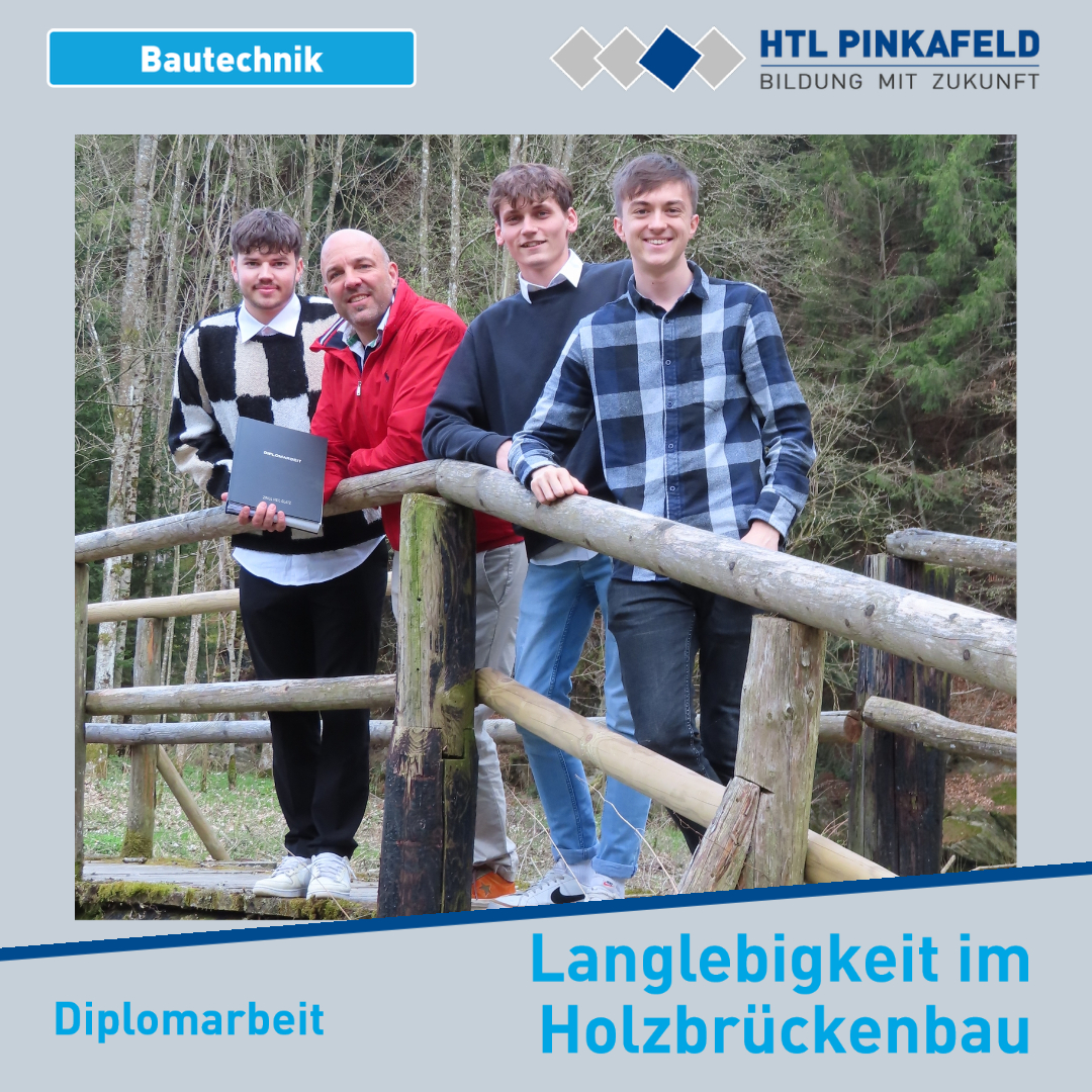 Im Rahmen der Errichtung eines Geh- und Radweges entlang der Lafnitz, im Bereich der alten Kläranlage der Gemeinde Waldbach-Mönichwald haben sich die drei Maturanten mit der Geschichte von Holzbrücken auseinandergesetzt und in weiterer Folge den ökonomischen, sowie ökologischen Fußabdruck verschiedener Konstruktionen und Baustoffe erarbeitet.