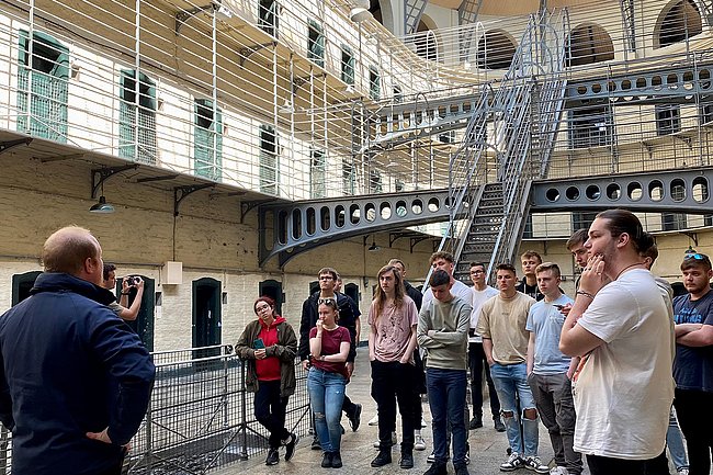 Zu den Highlights gehörten der spektakuläre Cliffwalk auf der Halbinsel Howth, ein Sprung in den Bergsee von Glendalough, ein Besuch des Guiness-Storehouse und eine Besichtigung des Kilmainham Gaol, wo die irischen Freiheitskämpfer von 1916 interniert waren. Außerdem versuchten sich die Schüler*innen im traditionellen Ceili-Dancing.
