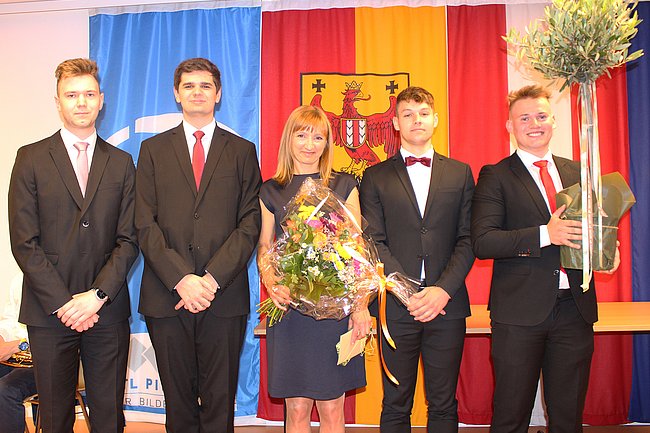 Bei der Verabschiedung bedankte sich Informatik-Abteilungsvorstand Thomas Gabriel bei allen Beteiligten sehr herzlich. Schulqualitätsmanager Bernd Hochwarter hob die Bedeutung einer hervorragenden Ausbildung für einen erfolgreichen Berufseinstieg hervor. Dir. Wilfried Lercher betonte den guten Ruf der HTL Pinkafeld in Österreich und darüber hinaus. Elternvereins-Obfrau Gabriele Pickl-Pratscher überreichte den Ausgezeichneten eine Silbermünze.