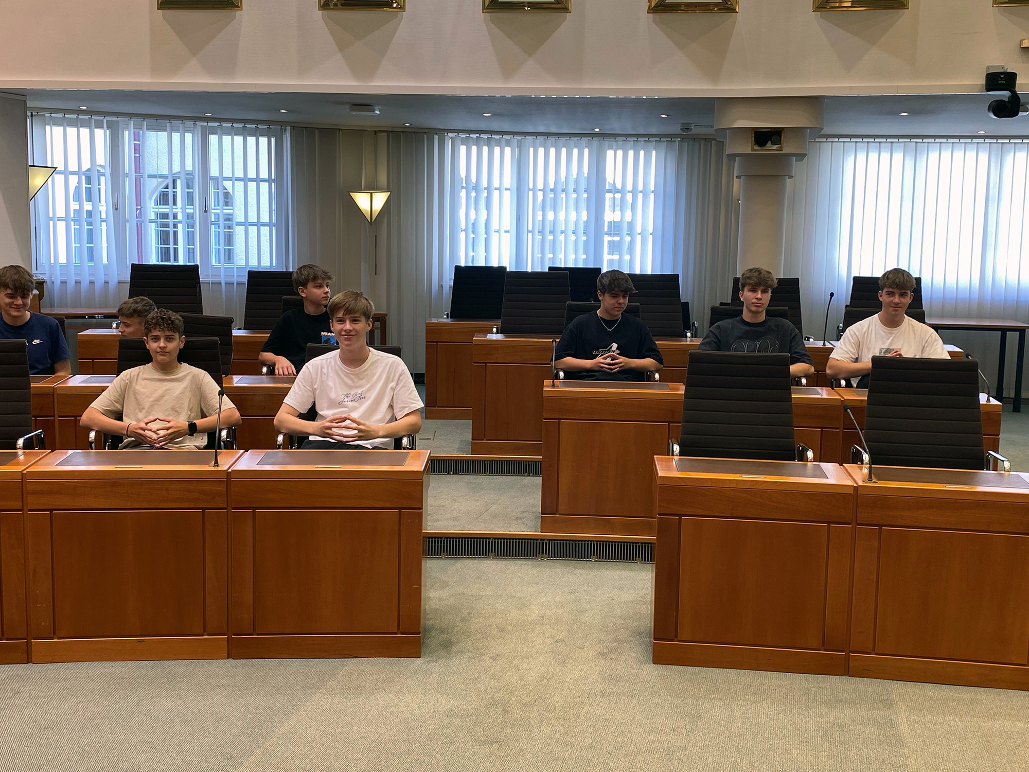 Ein spannendes, fächerübergreifendes Projekt wagten die Bautechnik-Schüler*innen der 2CHBT Ende September gemeinsam mit ihrer Klassenvorständin Prof. Sonja Szelinger und Prof. Benjamin Sasdi: In dessen Fokus stand auf der einen Seite der historische Zugang zum burgenländischen Landtag, dessen Architektur und politische Bedeutung. Johann Lotter, Alt-Bgm. des historisch bedeutsamen Ortes Schattendorf, nahm sich sehr viel Zeit und führte die Gruppe aus der HTL Pinkafeld mit viel Herzblut, sehr unterhaltsam und informativ durch die Landtagsräumlichkeiten.