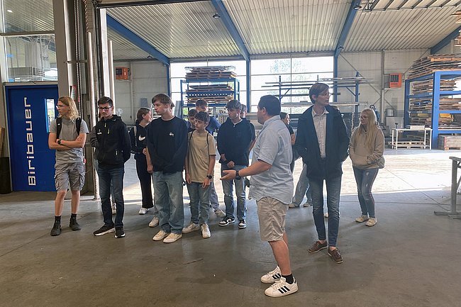 Auf der anderen Seite konnten die Schülerinnen und Schüler beim Metallbaubetrieb Biribauer in Marz neue Erfahrungen auf dem Gebiet der Metallverarbeitung sowie der Planung, Ausführung und Konstruktion aus Stahl, Aluminium und Edelstahl sammeln. Ing. DI(FH) Peter Stangl, MSc MLS schaffte es empathisch und mit fachlicher Kompetenz, das Interesse der Schülerinnen und Schüler zu wecken.