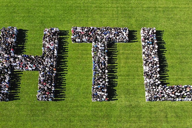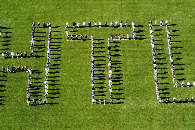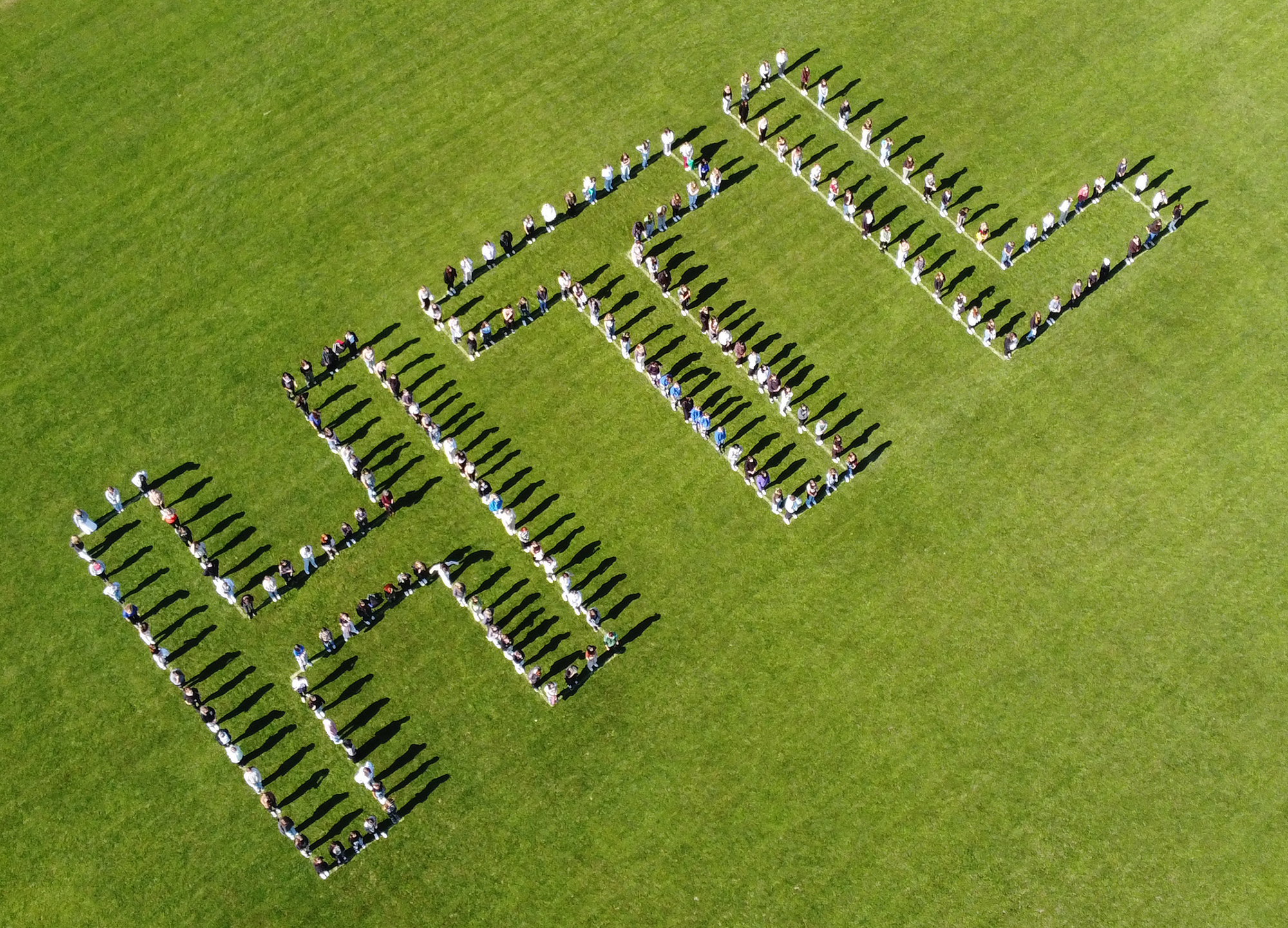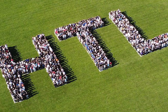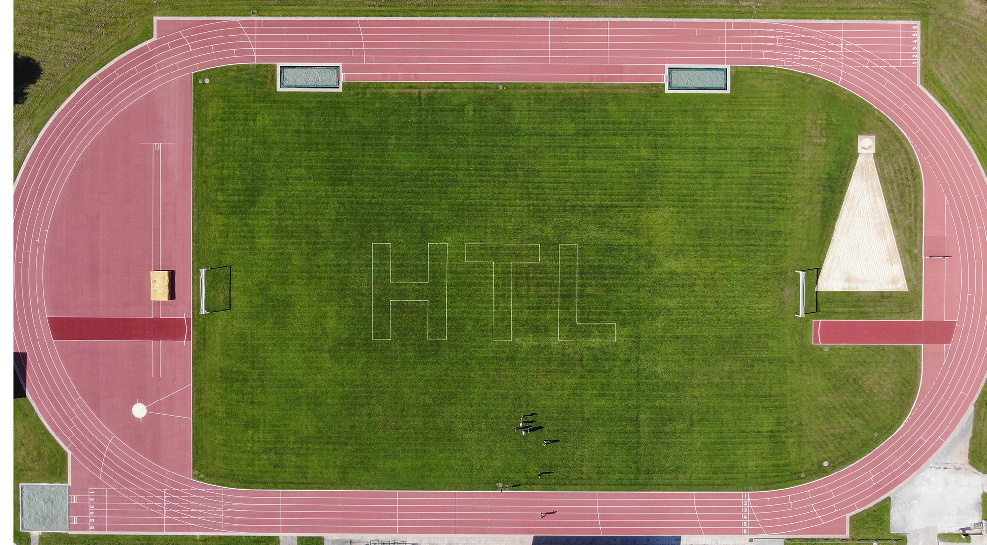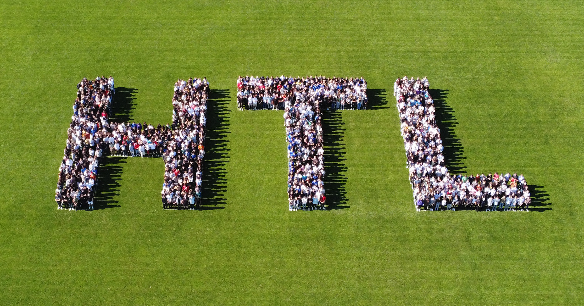 Dazu waren von Bauhofleiter Prof. Michael Petrakovits und dem HTL-Supportteam mit vermessungstechnischer Genauigkeit die drei Buchstaben „HTL“ in den Rasen des Fußballfeldes gezeichnet worden. Für die Erstellung der Luftaufnahmen waren die Drohnen der Gebäudetechnik-Abteilung im Einsatz. Werkstättenleiter Prof. Stefan Singraber und Prof. Lukas Tkauz nutzen u.a. die Möglichkeiten der Wärmebildkamera und schossen Fotos aus verschiedenen Flughöhen und Einstellungen.