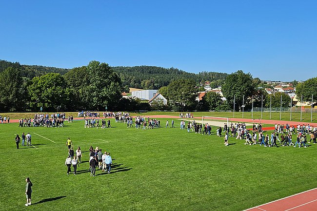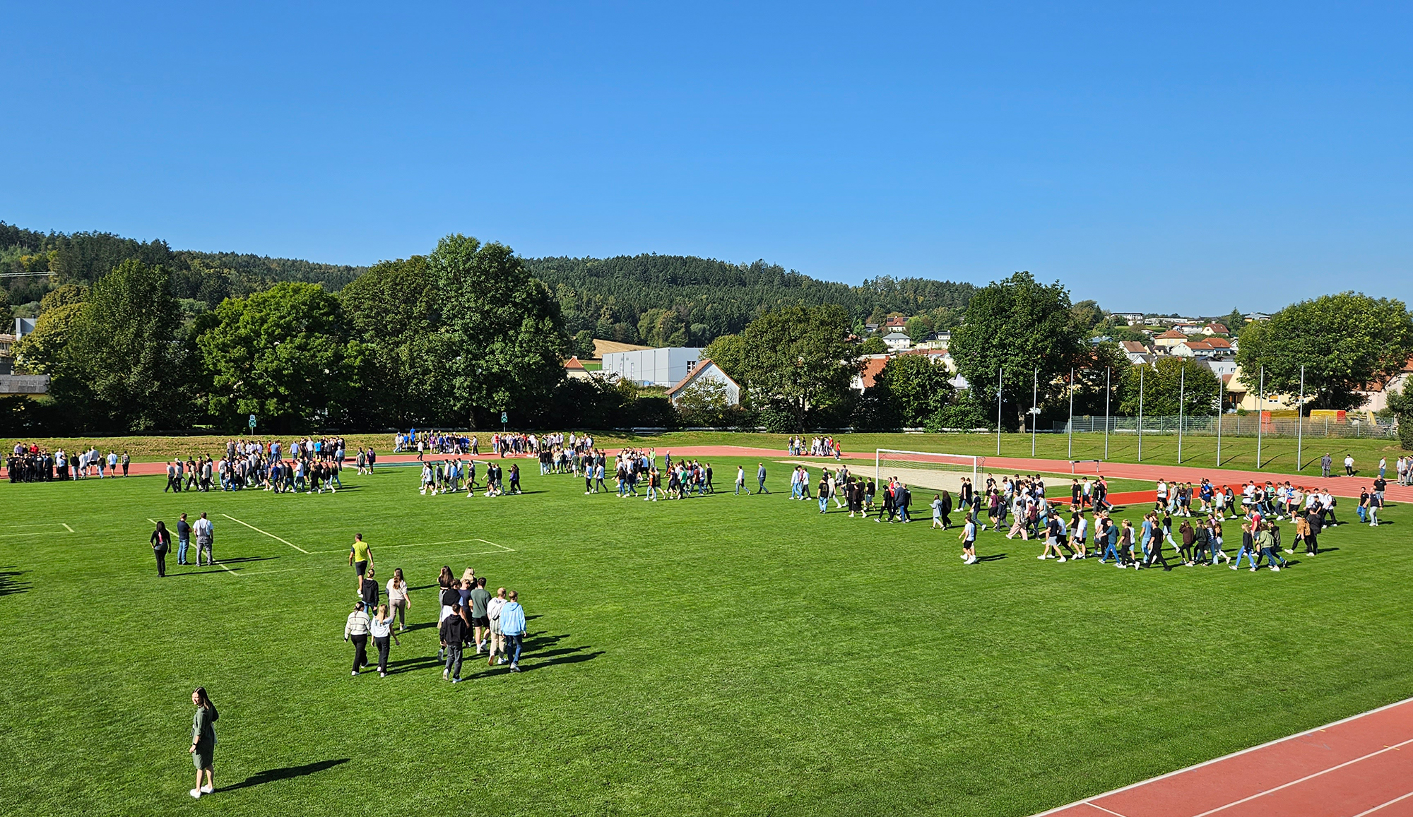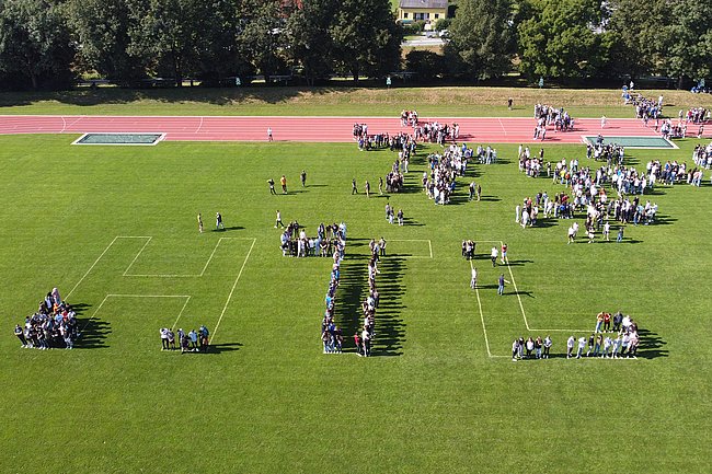 Während der Wartezeit nach dem Eintreffen bei den Sammelpunkten und der Meldung der Lehrer*innen beim Übungsleiter wurden bei idealen Wetterbedingungen Fotos aller rund 1.200 Schüler*innen der Tagesform sowie der über 200 Schülerinnen erstellt.
