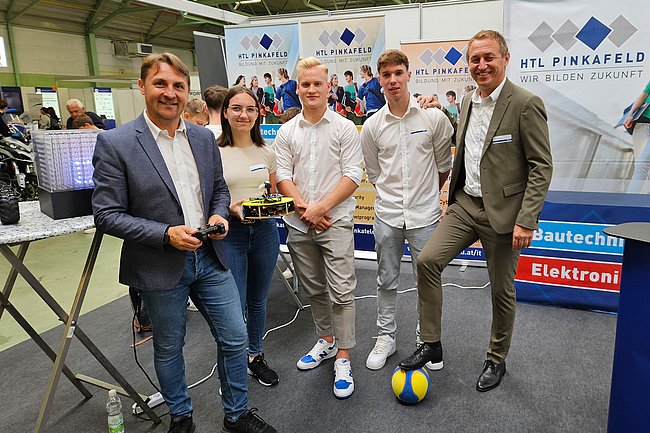 Am Mittwoch, 4. Oktober 2023, fand in der Messe Oberwart die Eröffnung der Bildungs- und Berufsinformationsmesse Burgenland (BiBi) durch Bildungslandesrätin Daniela Winkler statt.Mit dabei waren auch Dir. Wilfried Lercher, Bautechnik-Abteilungsvorständin Ulrike Hartler, Informatik-/IT-Abteilungsvorstand Thomas Gabriel und Elektronik-Werkstättenleiter Harald Stipsits.