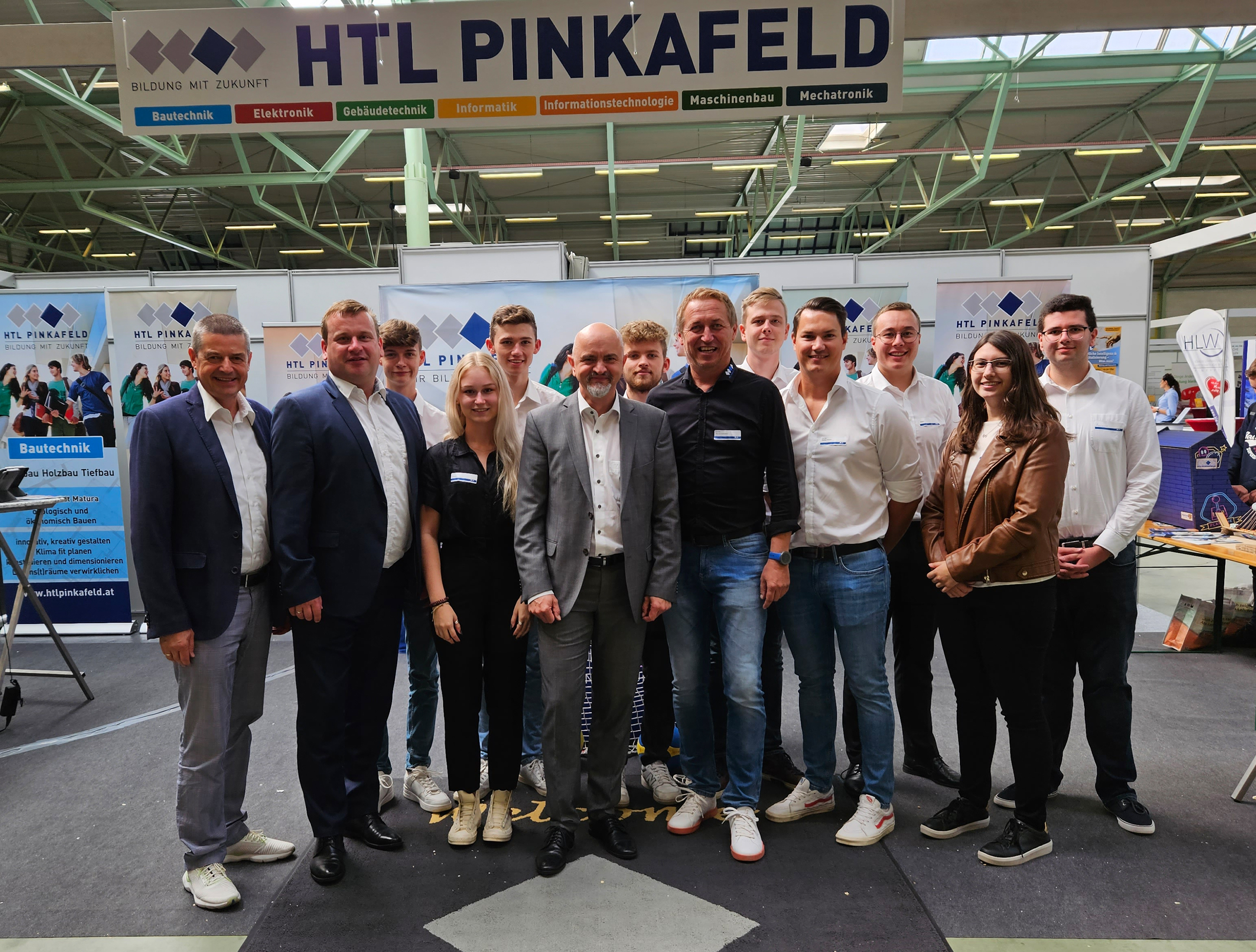 Sie ließen sich von den Schüler*innen der vier Abteilungen Bautechnik, Elektronik, Gebäudetechnik und Informatik / IT die neuesten technischen Entwicklungen zeigen lassen und demonstrierten auch ihr fußballerisches Können.