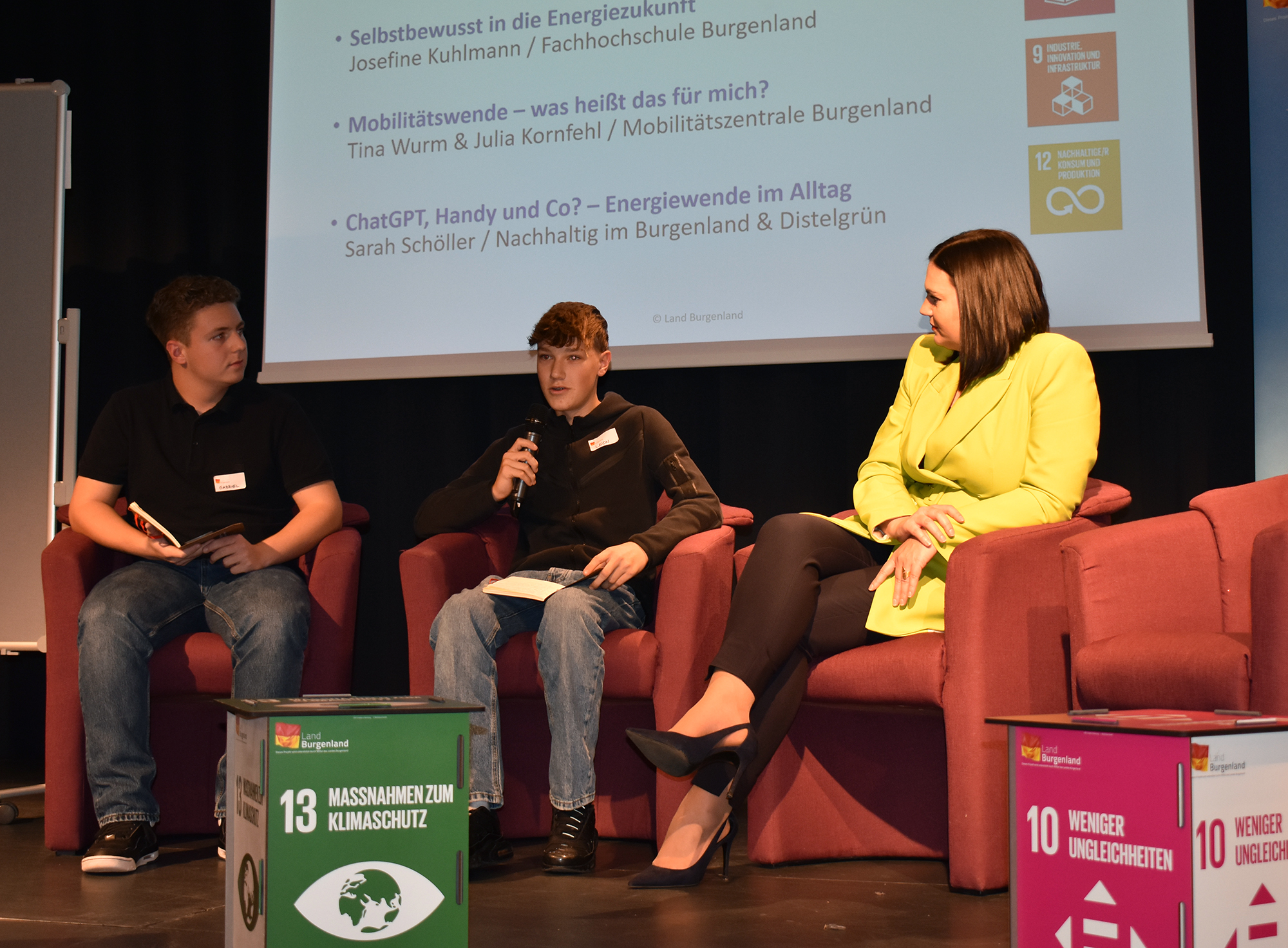 Dieser Tag, der im Zeichen des Klimaschutzes stand, zeigte das starke Interesse sowie die Kompetenz der Jugend für eine lebenswerte Zukunft im Burgenland. Prof. Birgit Stephan und Prof. Christoph Kuh begleiteten das Schülerteam der Gebäudetechnik, welches durch das Fach Klima- & Umweltschutz bereits Vorwissen in die Diskussion mitbrachte. Ihre Lehrerin Prof. Judith Fenz leistet hier hervorragende Arbeit.