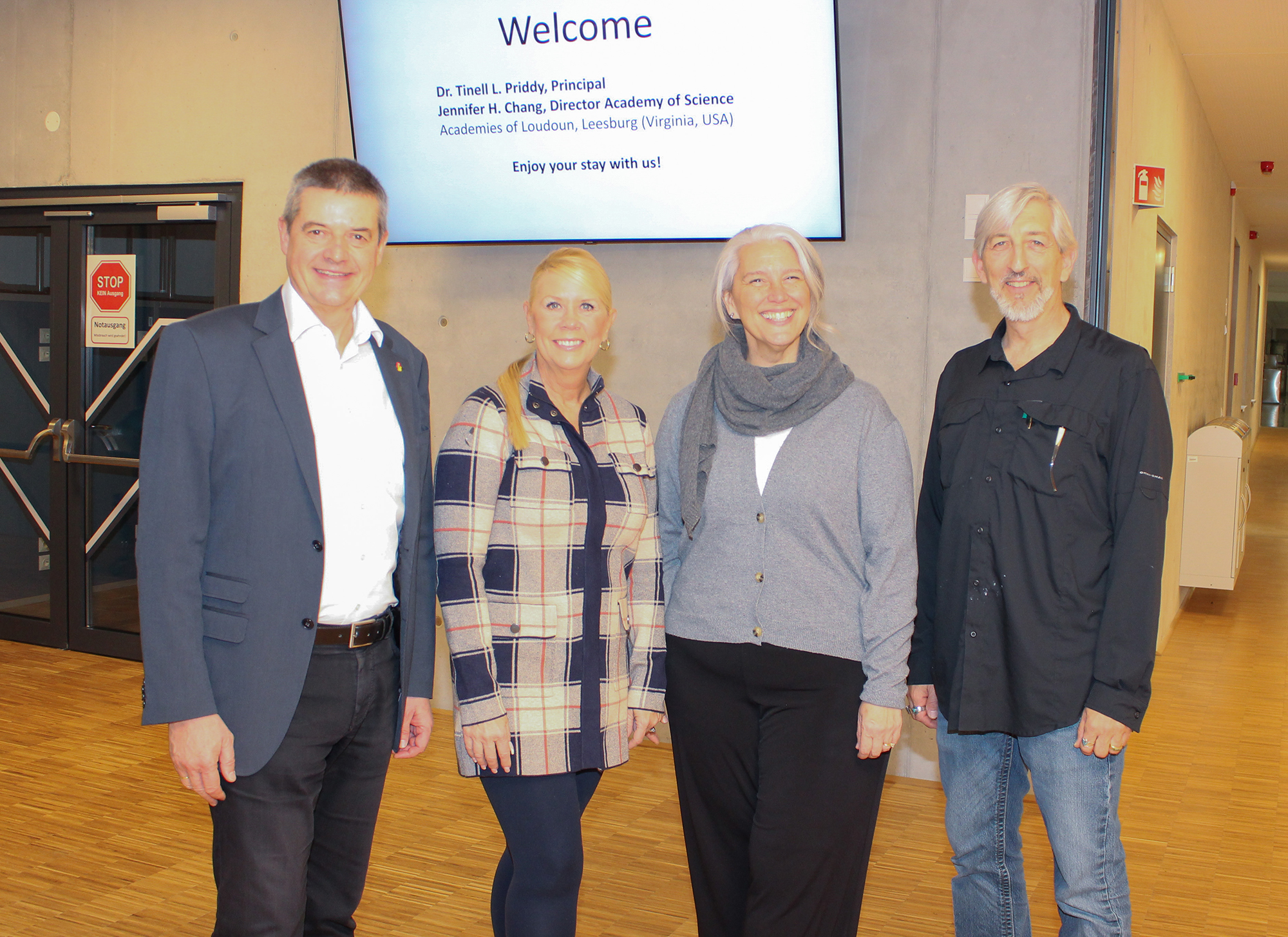 So konnte Dir. Wilfried Lercher am „Tag der offenen Tür“ als besondere Gäste deren Direktorin Dr. Tinell L. Priddy und ihre Vizedirektorin Jennifer H. Chang begrüßen. Die Schule mit Technikschwerpunkt hat 2500 Schülerinnen und Schüler im Alter von 14 bis 18 Jahren und liegt 40 Kilometer westlich von Washington DC.