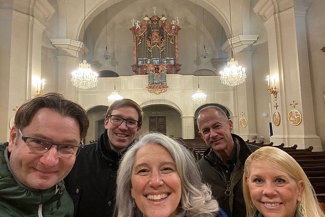 Neben den Gesprächen und Aktivitäten über die beginnende Partnerschaft konnten die Gäste aus den USA auch Pinkafeld und das Südburgenland näher kennenlernen. So gab es eine Führung im Stadtmuseum Pinkafeld durch „Nachtwächter“ Prof. Christian Putz und ein „Privatkonzert“ des bekannten Pinkafelder Kirchenmusikers Peter Tiefengraber auf der neuen Orgel der Stadtpfarrkirche. Beim Besuch einer Vinothek und eines Buschenschanks mit Kellerführung erhielten die Gäste auch einen guten Eindruck der burgenländischen Weinkultur und der kulinarischen Besonderheiten der Region.