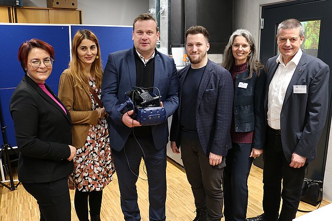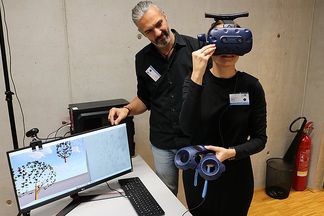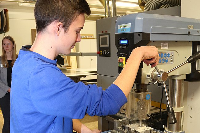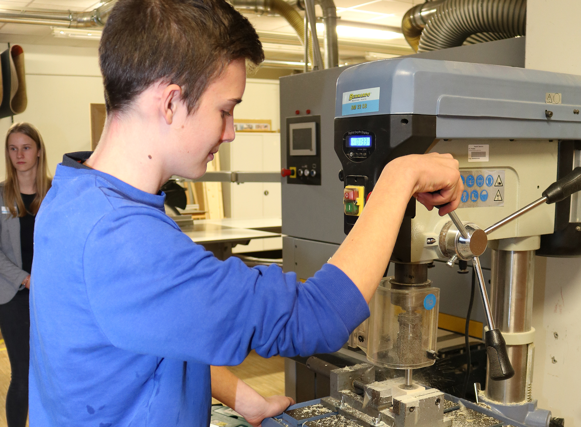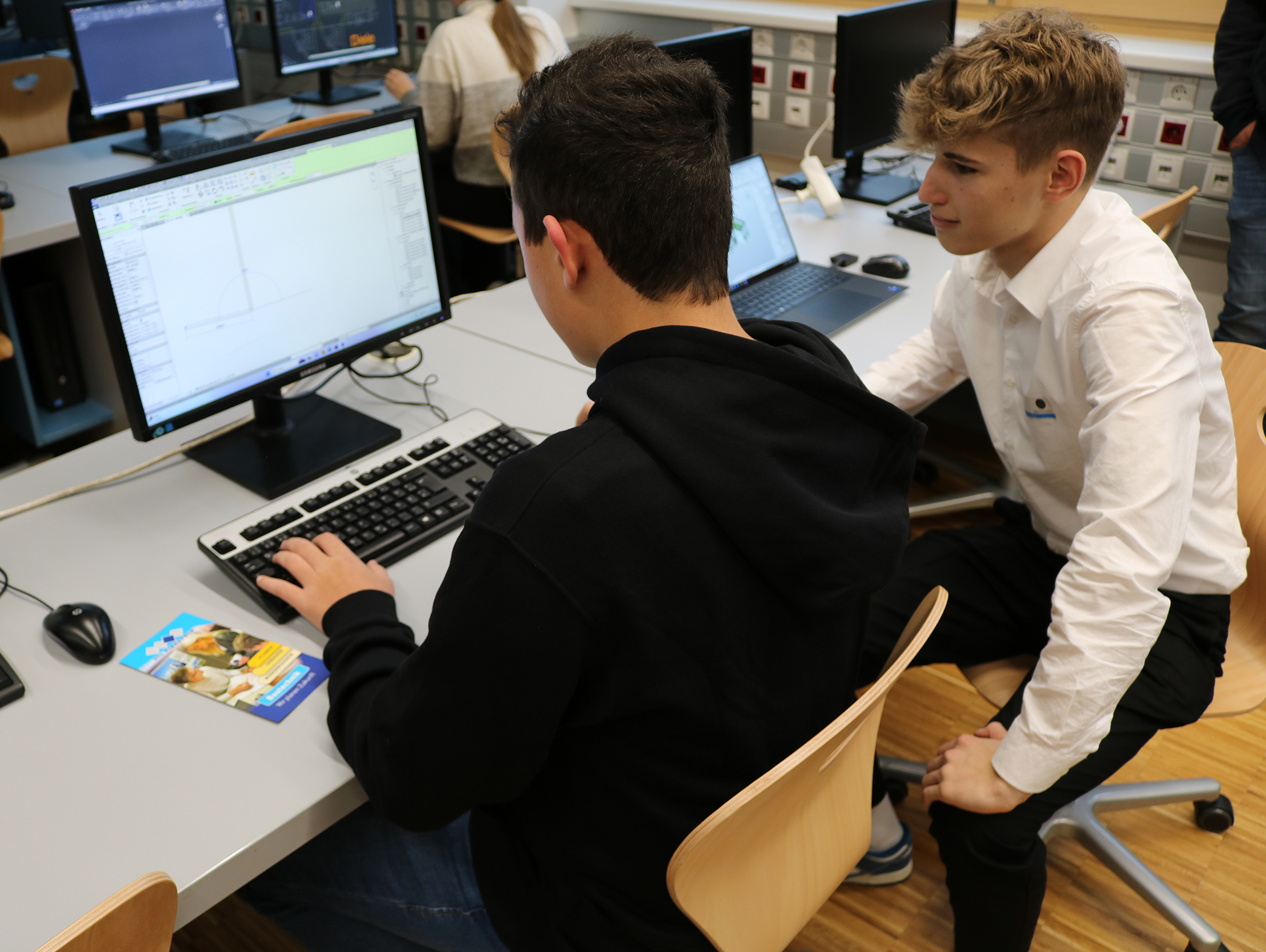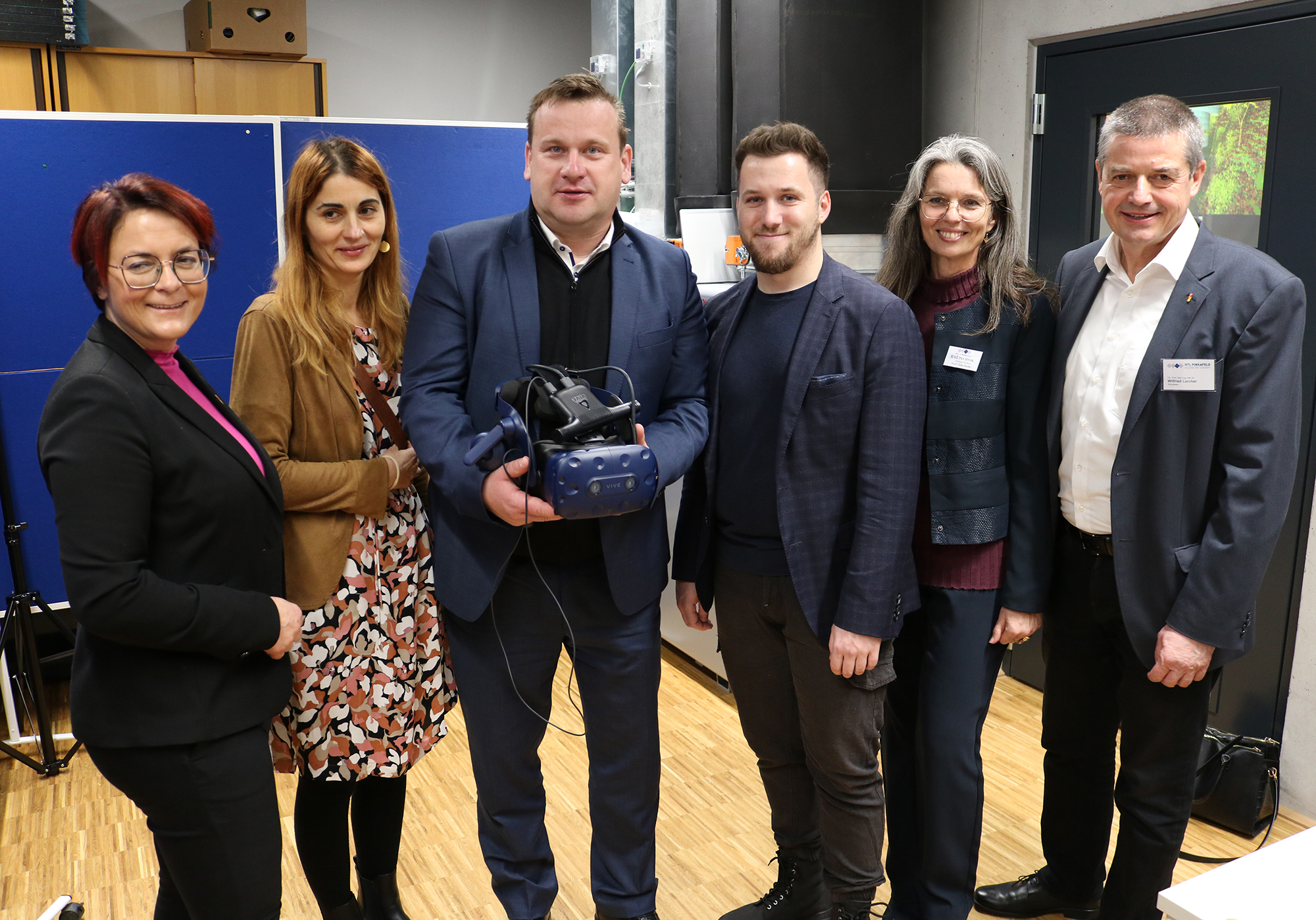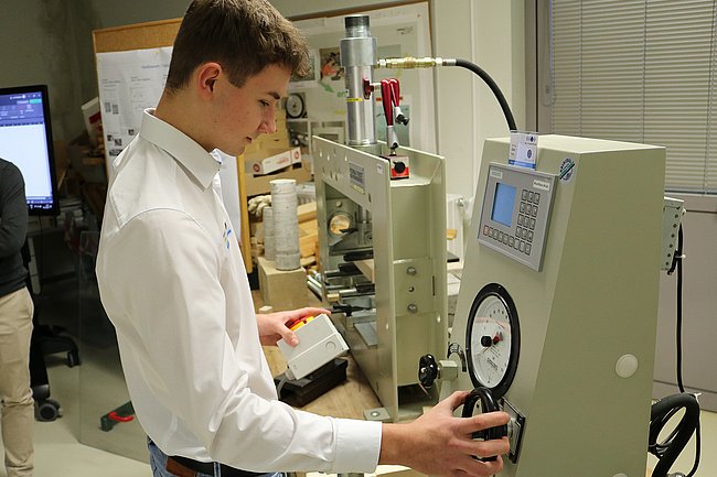 So wurden die verschiedenen Aspekte des Unterrichts anhand der Gegenstände und von Diplomarbeiten erläutert. Im Baulabor wurden Holz- und Betonversuche durchgeführt, die Zukunft des virtuellen Bauens wurde mittels VR-Brille sowie 3D-Scannen und -Drucken demonstriert. Die Wärmebildkamera zeigte am Modellhaus sehr anschaulich potentielle Schwachstellen. Wesentliche Teile des fachpraktischen Unterrichts in der Zimmerei und Maurerei konnten am Ende des Rundgangs selbst ausprobiert werden.