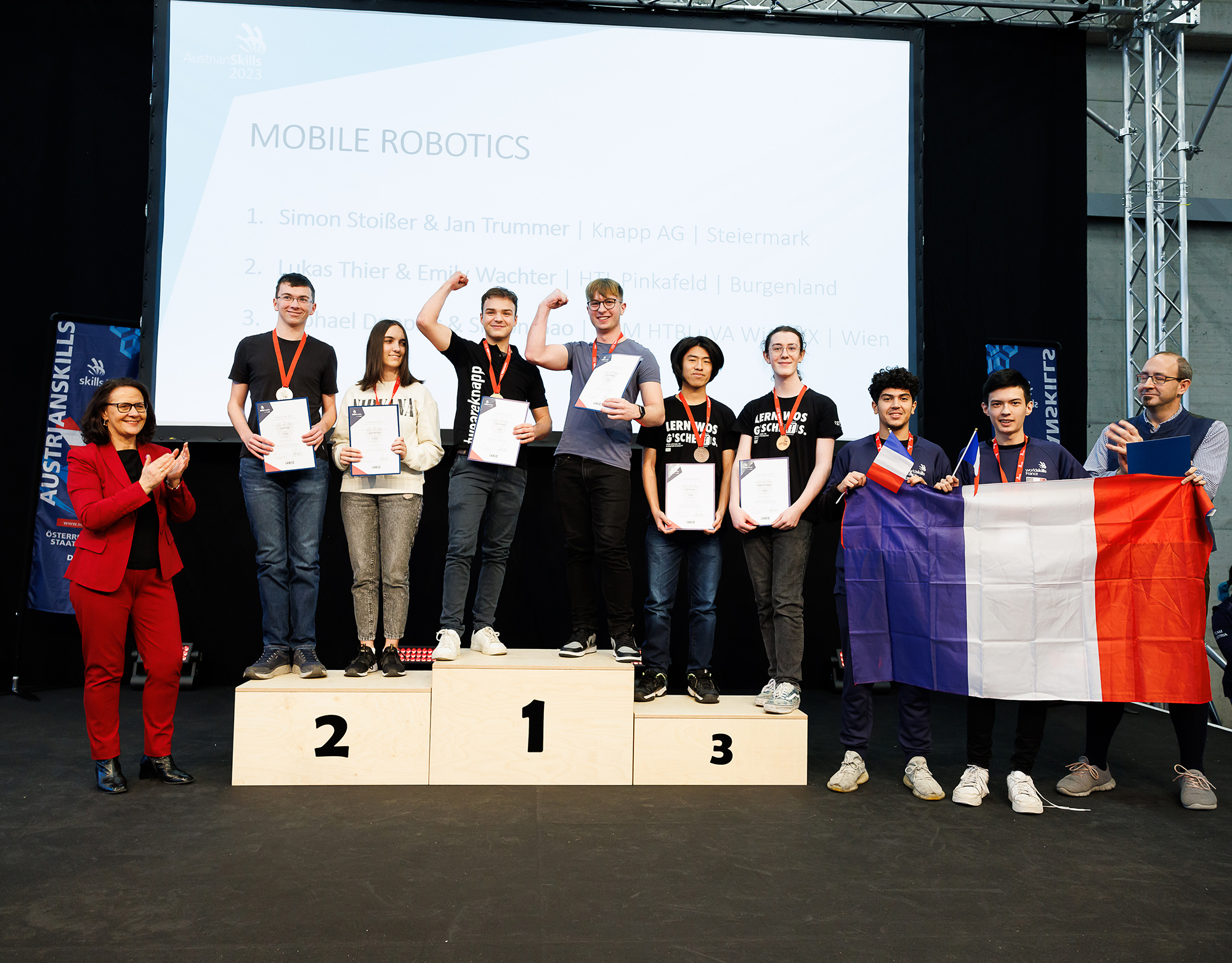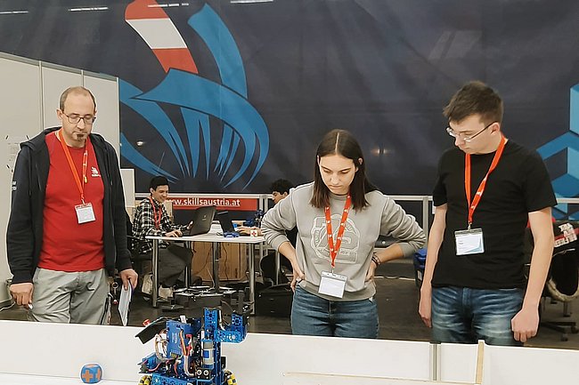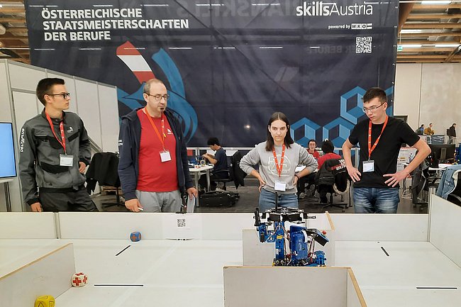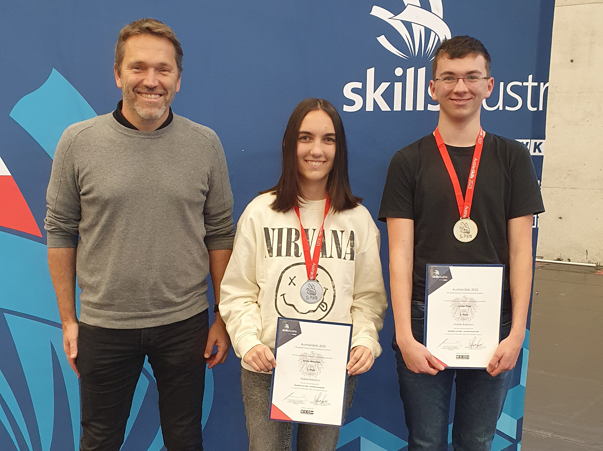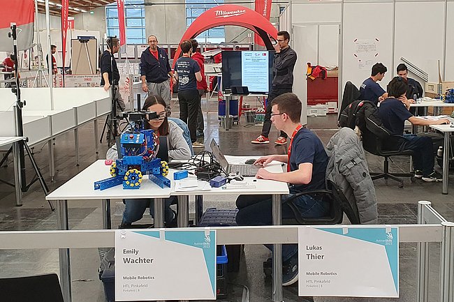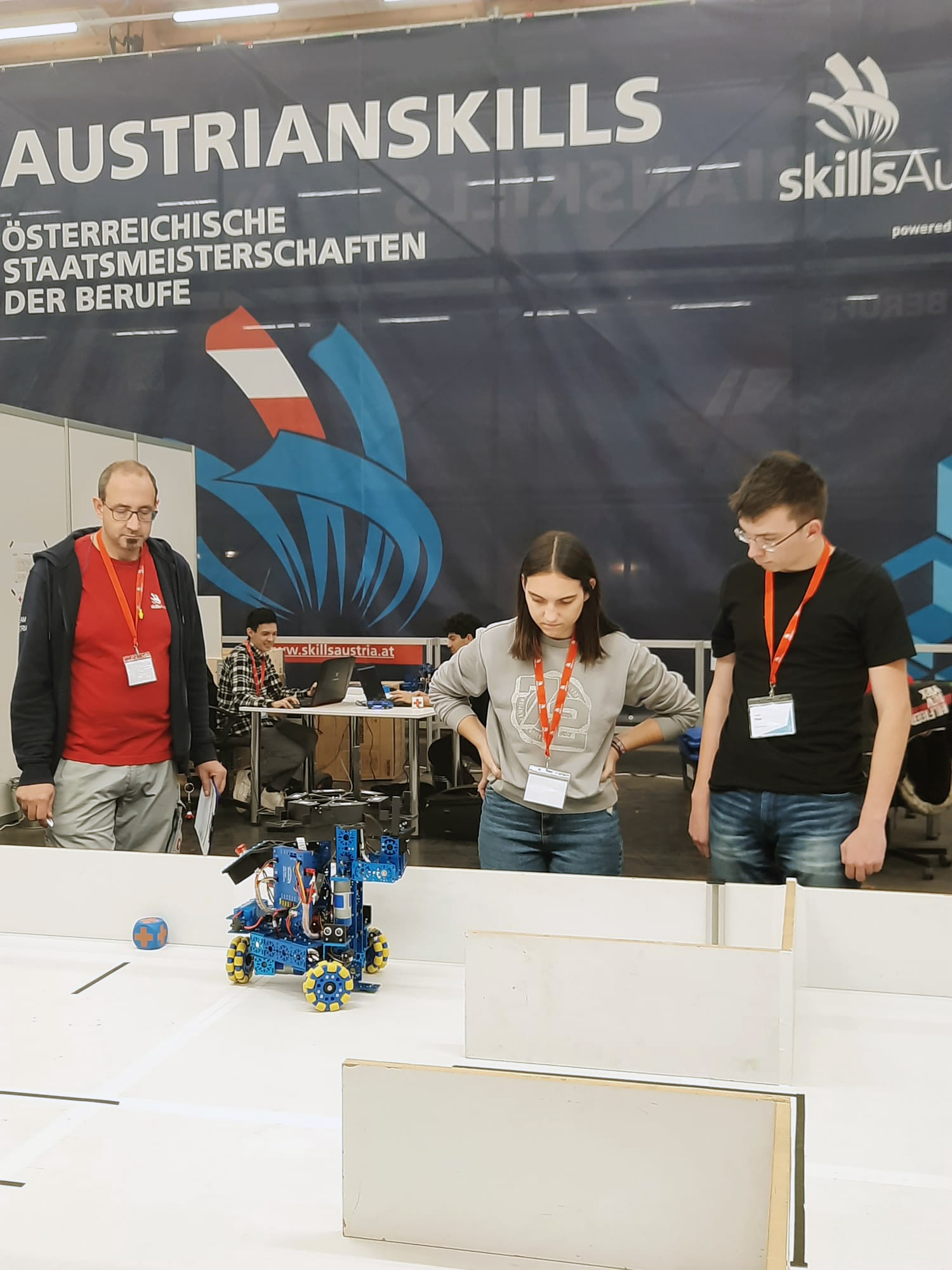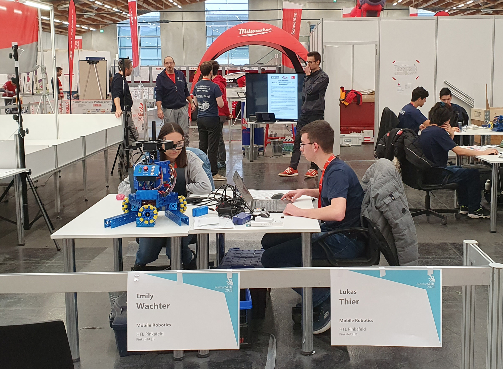 Von 23. bis 26. November fanden im Messezentrum Salzburg die diesjährigen AustrianSkills, die Österreichischen Staatsmeisterschaften der Berufe, statt. Rund 300 Jungfachkräfte gingen in 29 Bewerben an den Start. Die Elektronik-Schüler Emily Wachter und Lukas Thier vertraten die HTL Pinkafeld im Teamberuf „Mobile Robotics“, vorbereitet und begleitet wurden sie von Prof. Dietmar Scheiblhofer.