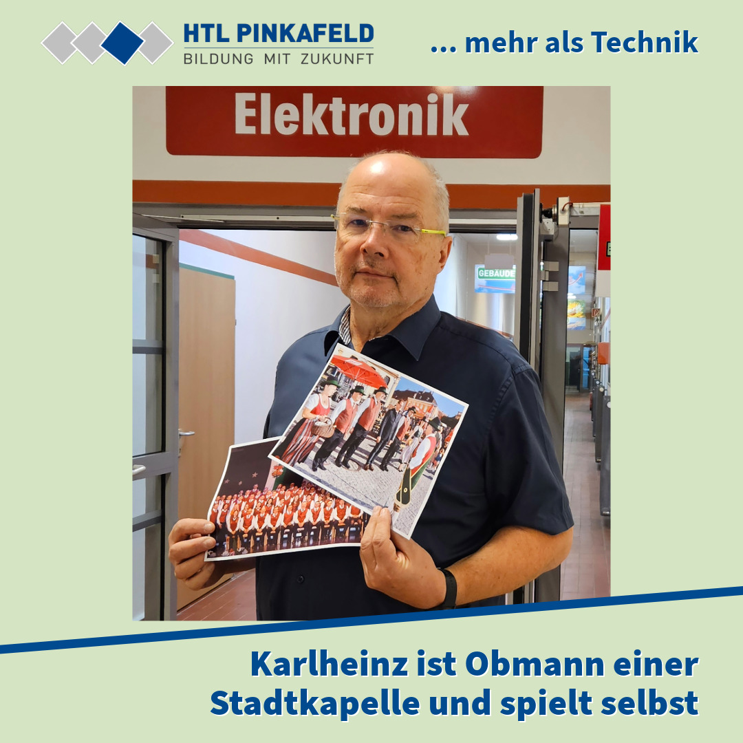 Karlheinz ist Abteilungsvorstand für Elektronik und Technische Informatik an der HTL Pinkafeld und in seiner Freizeit Obmann der Stadtkapelle einer steirischen Bezirksstadt.