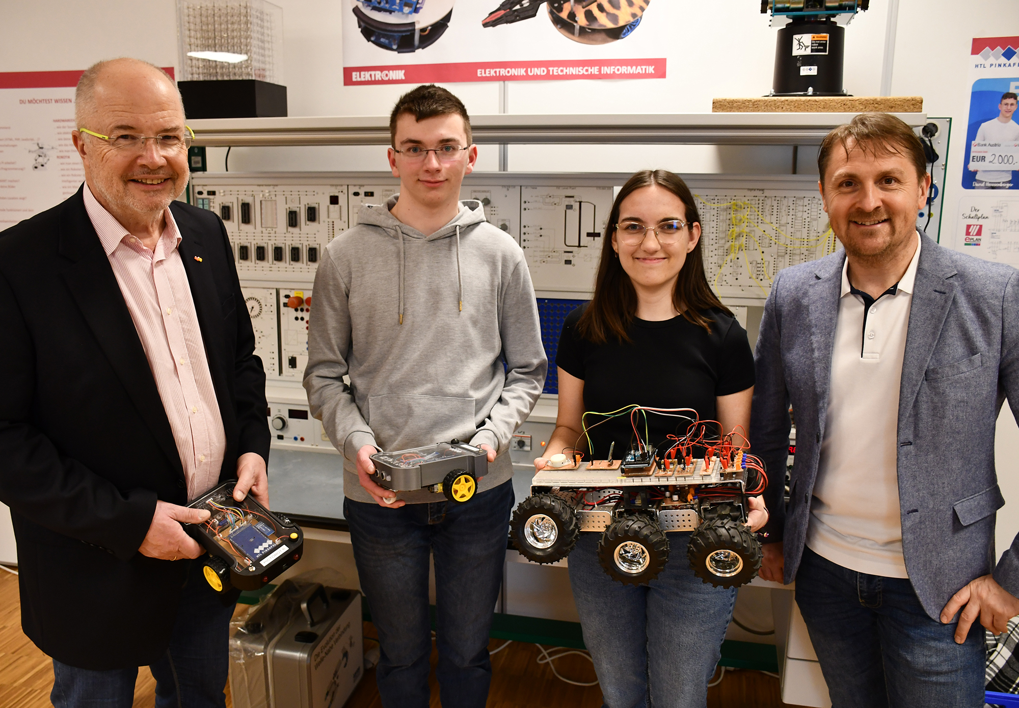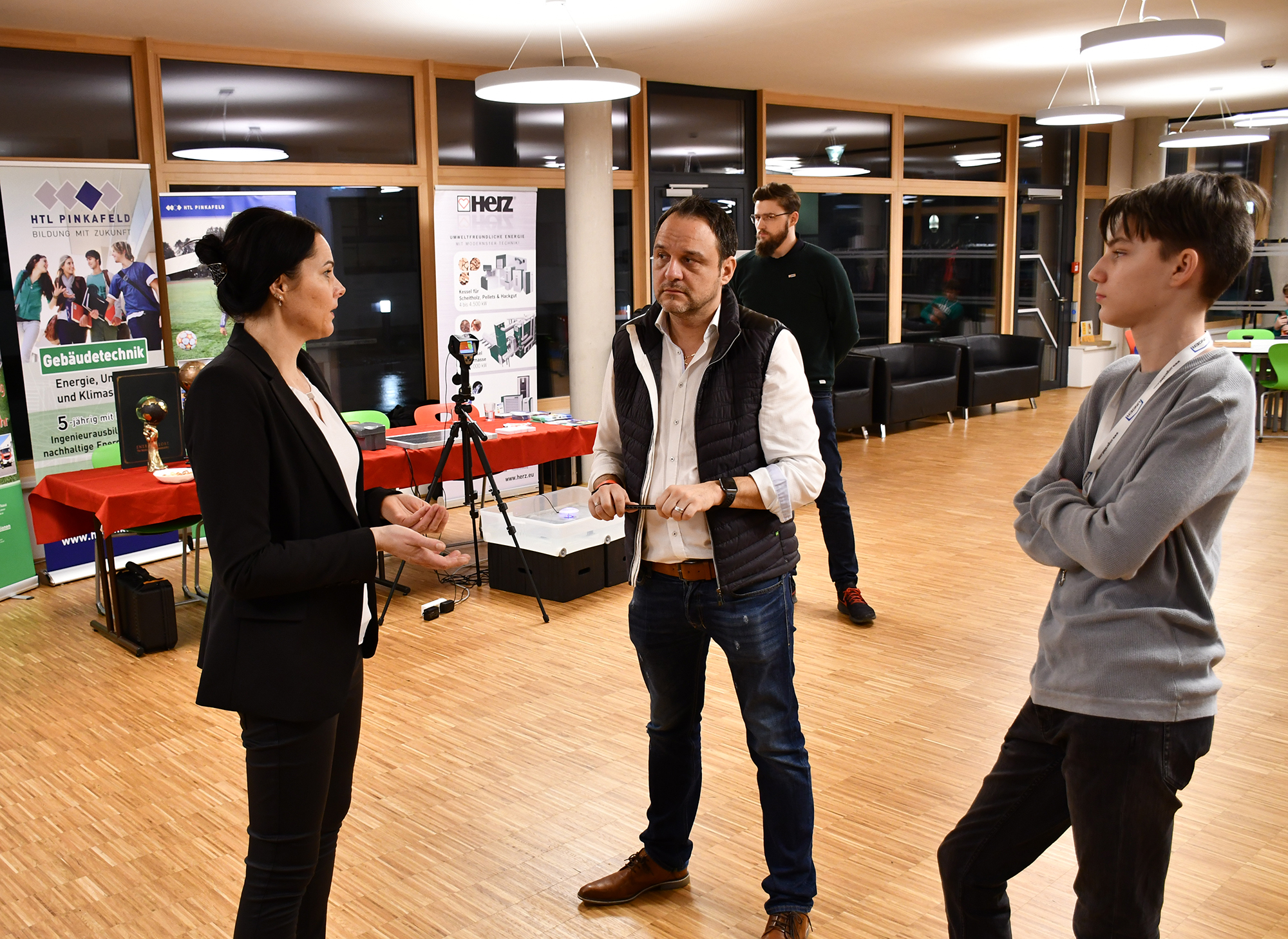 In der HTL Pinkafeld stellten Schüler*innen und Lehrer*innen sowie die Firmen Unger Stahlbau, Lenze, Herz und Seadev Studios die sieben Fachrichtungen Bautechnik, Elektronik, Gebäudetechnik, Informatik, Informationstechnologie, Maschinenbau und Mechatronik vor. So präsentierten u.a. die Vizestaatsmeister „Mobile Robotics“ bei den Österreichischen Staatsmeisterschaften der Berufe Emily Wachter und Lukas Thier ihre ausgezeichnete Arbeit.