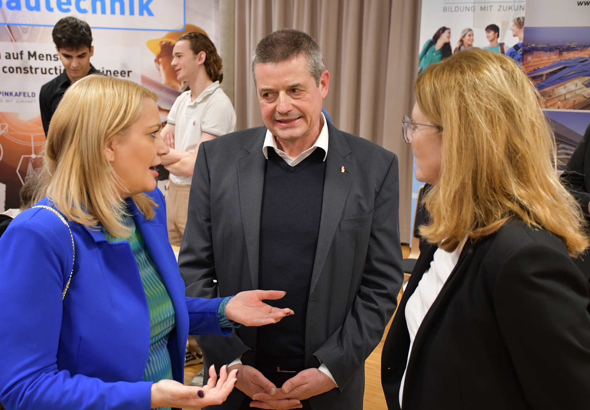 Auch Bildungslandesrätin Daniela Winkler und die Schulqualitätsmanager Bernd Hochwarter und Daniel Baumann waren gerne der Einladung gefolgt. WK-Vizepräsident Martin Horvath, WK-Regionalstellenobfrau Tanja Stöckl und WK-Regionalstellenleiter Christoph Winkler machten sich gemeinsam mit der Präsidentin der IV Burgenland Adelheid Adelwöhrer und IV Burgenland-Geschäftsführerin Aniko Benkö sowie Pinkafelds Vize-Bgm. Carina Laschober-Luif und weiteren Ehrengästen ein Bild von der hohen Ausbildungsqualität und der großen Vielfalt der drei Pinkafelder Schulen.