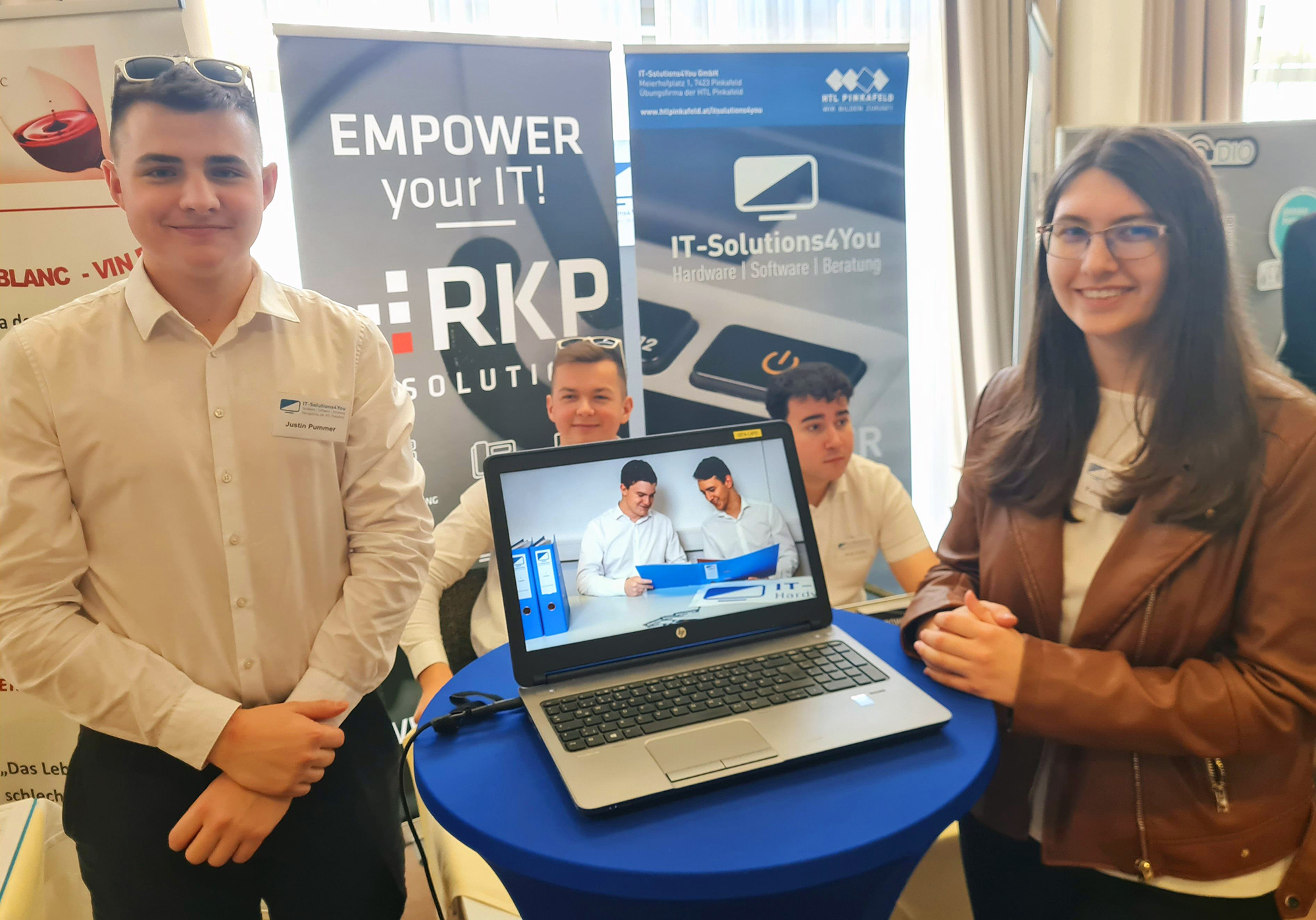 Alle Mitarbeiterinnen und Mitarbeiter der IT-Solutions4You GmbH nutzten die Gelegenheit, sich selbst, die Übungsfirma, das Partnerunternehmen RKP IT aus Hartberg sowie die HTL Pinkafeld werbewirksam und überzeugend zu präsentieren.